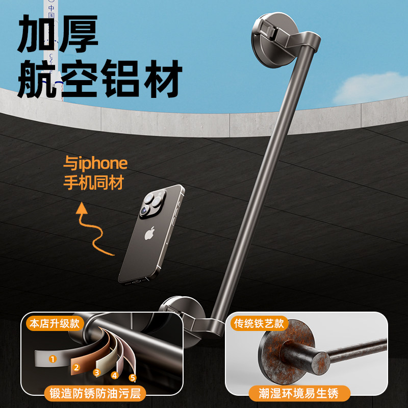 吸盘毛巾架卫生间免打孔浴室毛巾杆浴巾架置物架收纳架子强力免钉