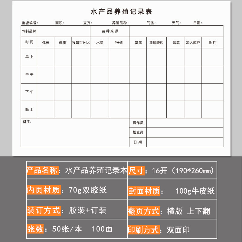 水产品养殖记录海鲜水产品销售养殖记录簿鱼塘水温水质运行登记簿饲料及添加剂兽药使用登记本兽药销售台账本