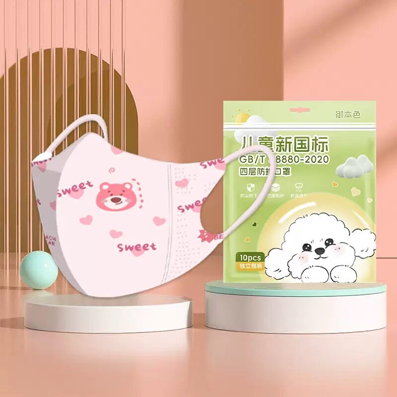 儿童KN95口罩4D立体学生卡通可爱小学生3到12岁四层防护独立包装