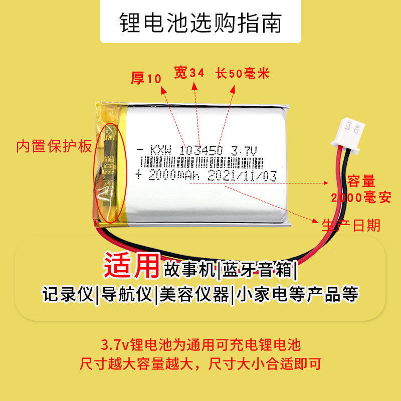 通用3.7v锂电池小布丁早教机故事机103450蓝宝贝龙猫鲁奇亚可充电