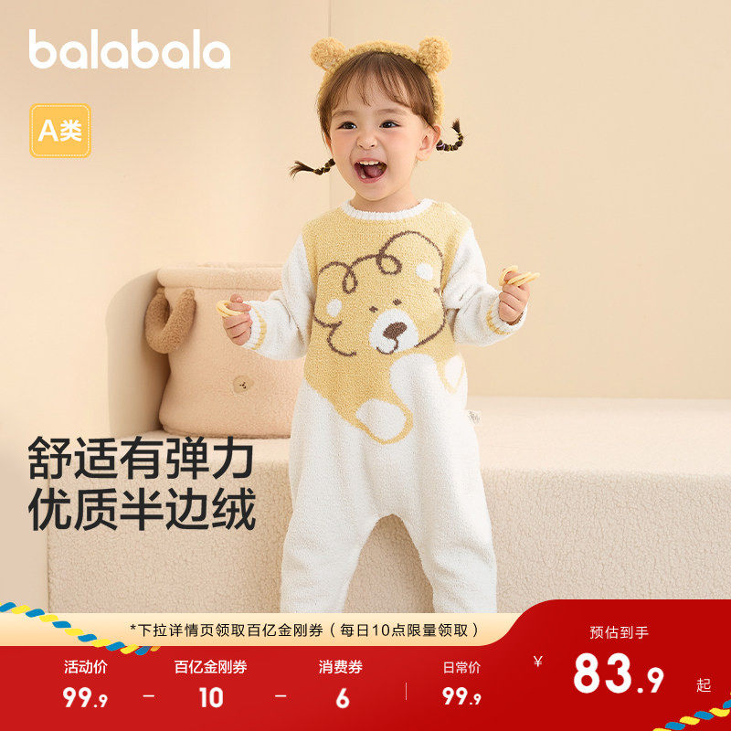 巴拉巴拉童装婴儿连体衣新生儿宝宝衣服哈衣爬服2026冬红色半边绒