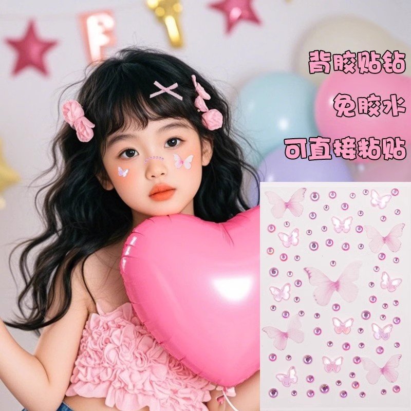 六一儿童节脸部装饰脸贴演出化妆亮片脸上妆容儿童蝴蝶贴纸碎钻张杰演唱会舞台妆表演专用彩妆音乐节面部饰品