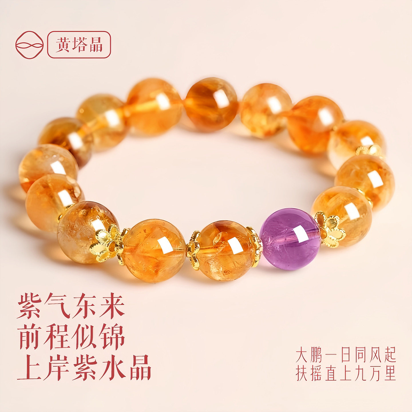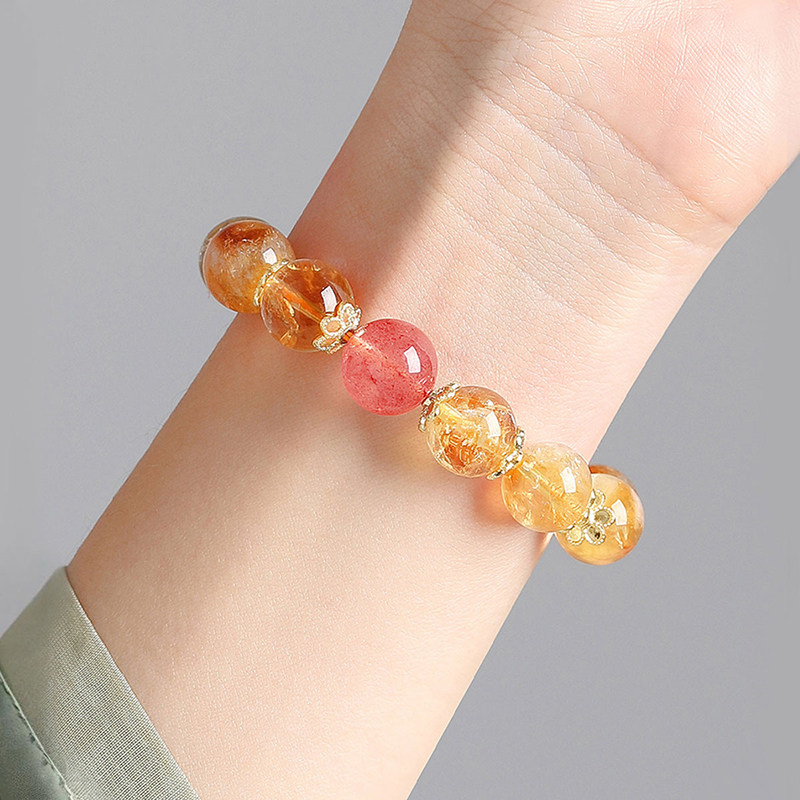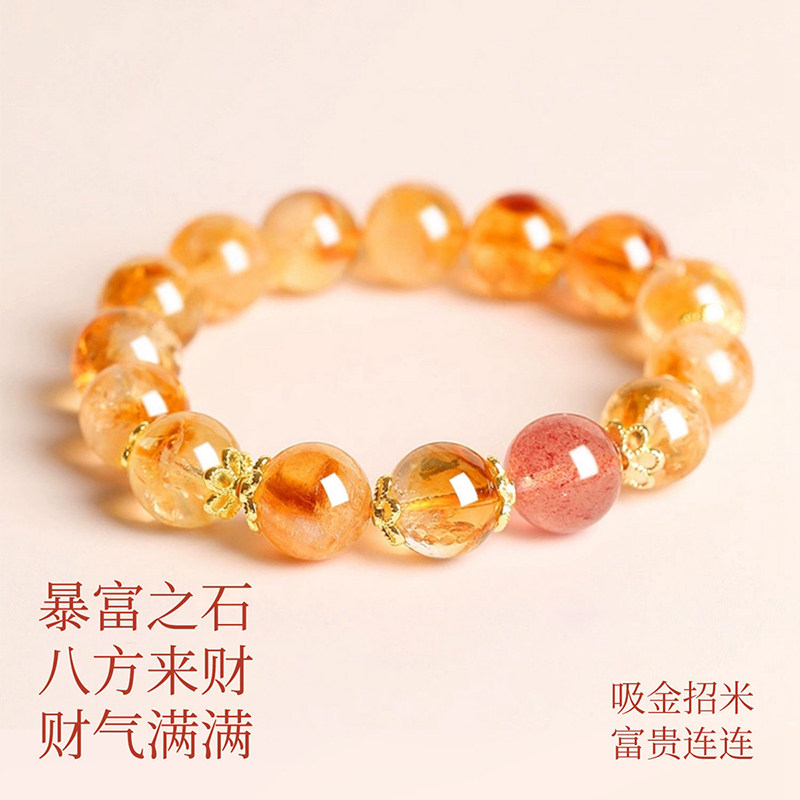 黄水晶手串女招财转运紫水晶草莓晶转运小众精致黄塔晶轻奢手链