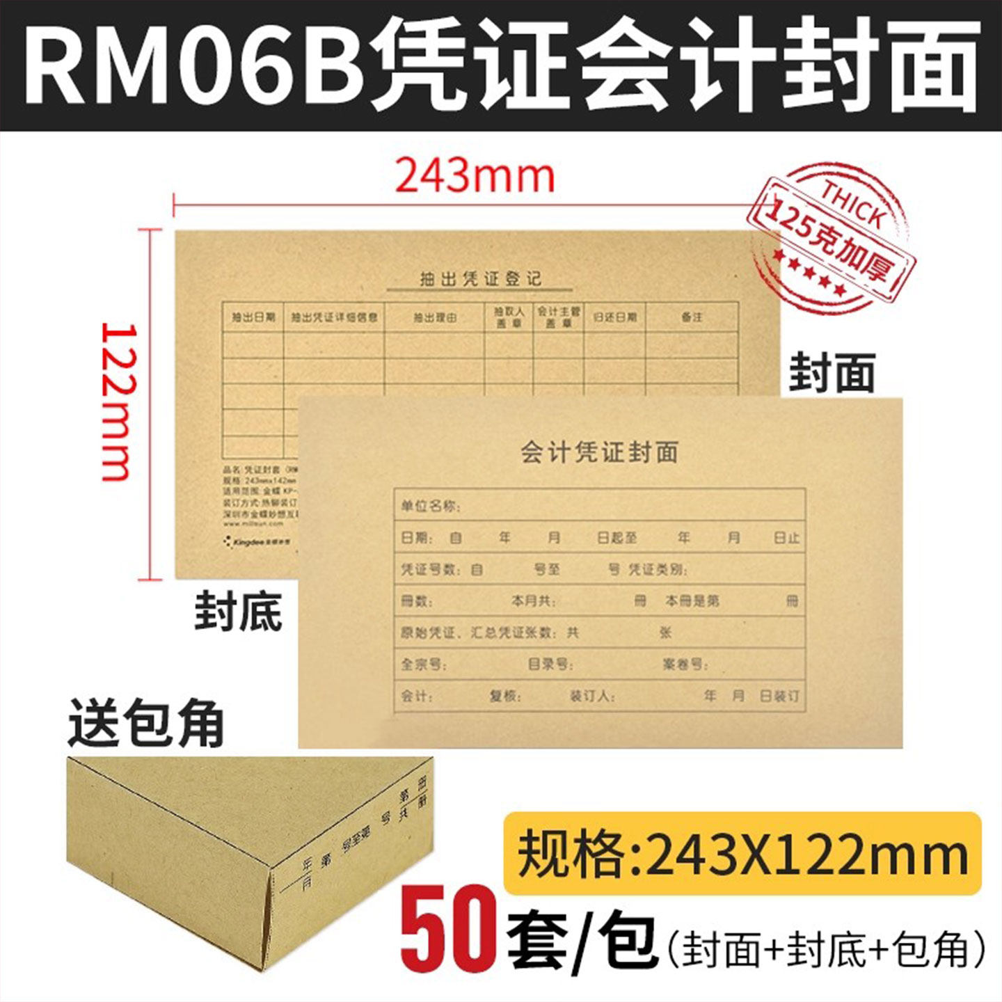 金蝶软件配套会计凭证纸封面243*122财务出纳应收付款差旅费用报销支出票据表单领用审批凭证封皮套包角RM06B
