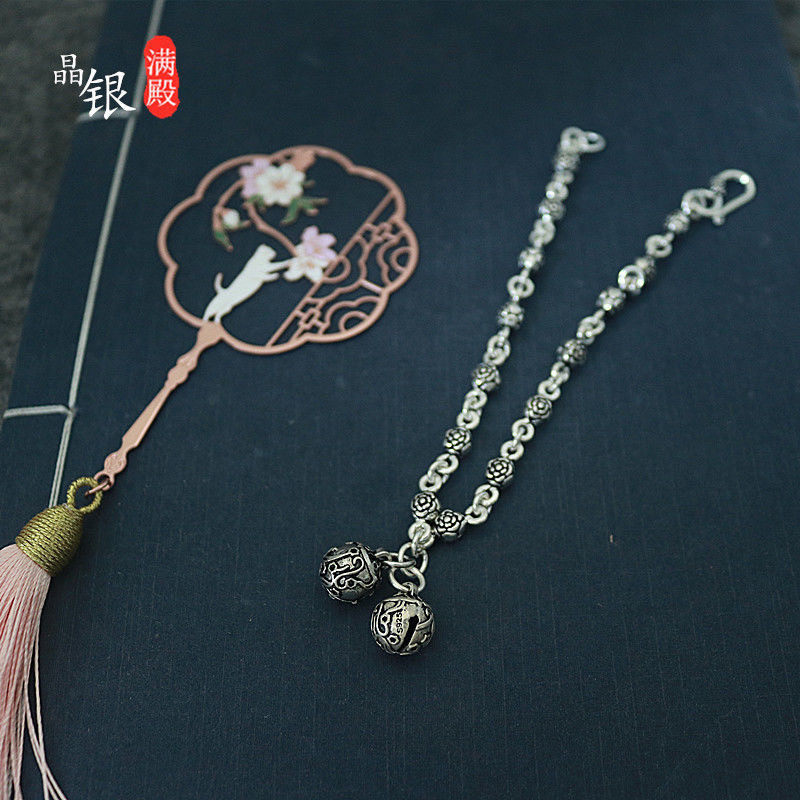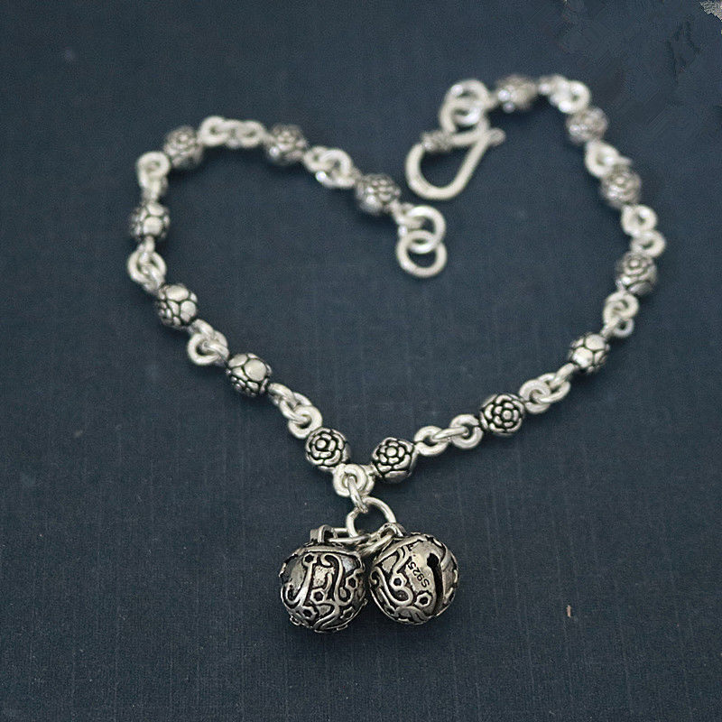 【幂琳】新款足银s999纯银脚链铃铛转运女复古民族风小众玫瑰花脚