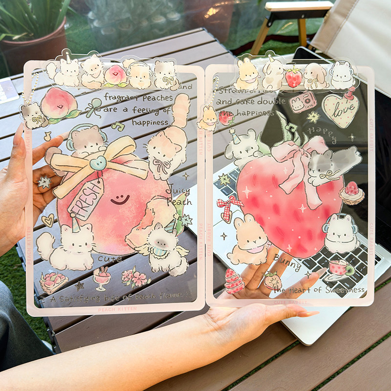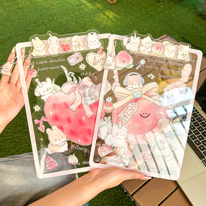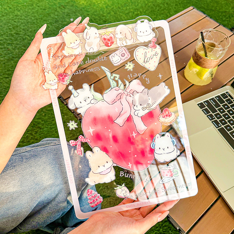 A4夹板亚克力加厚资料夹试卷夹绘画垫板清新少女心可爱草莓兔子款