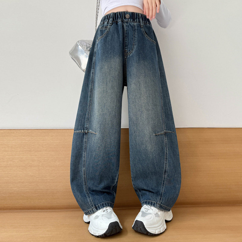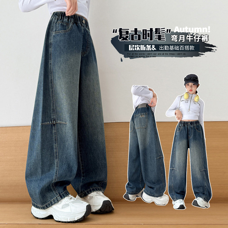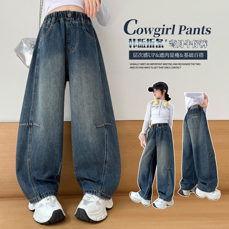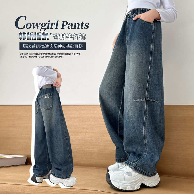 女童牛仔裤春装2026春秋儿童春秋百搭休闲裤大童女孩镰刀阔腿裤子