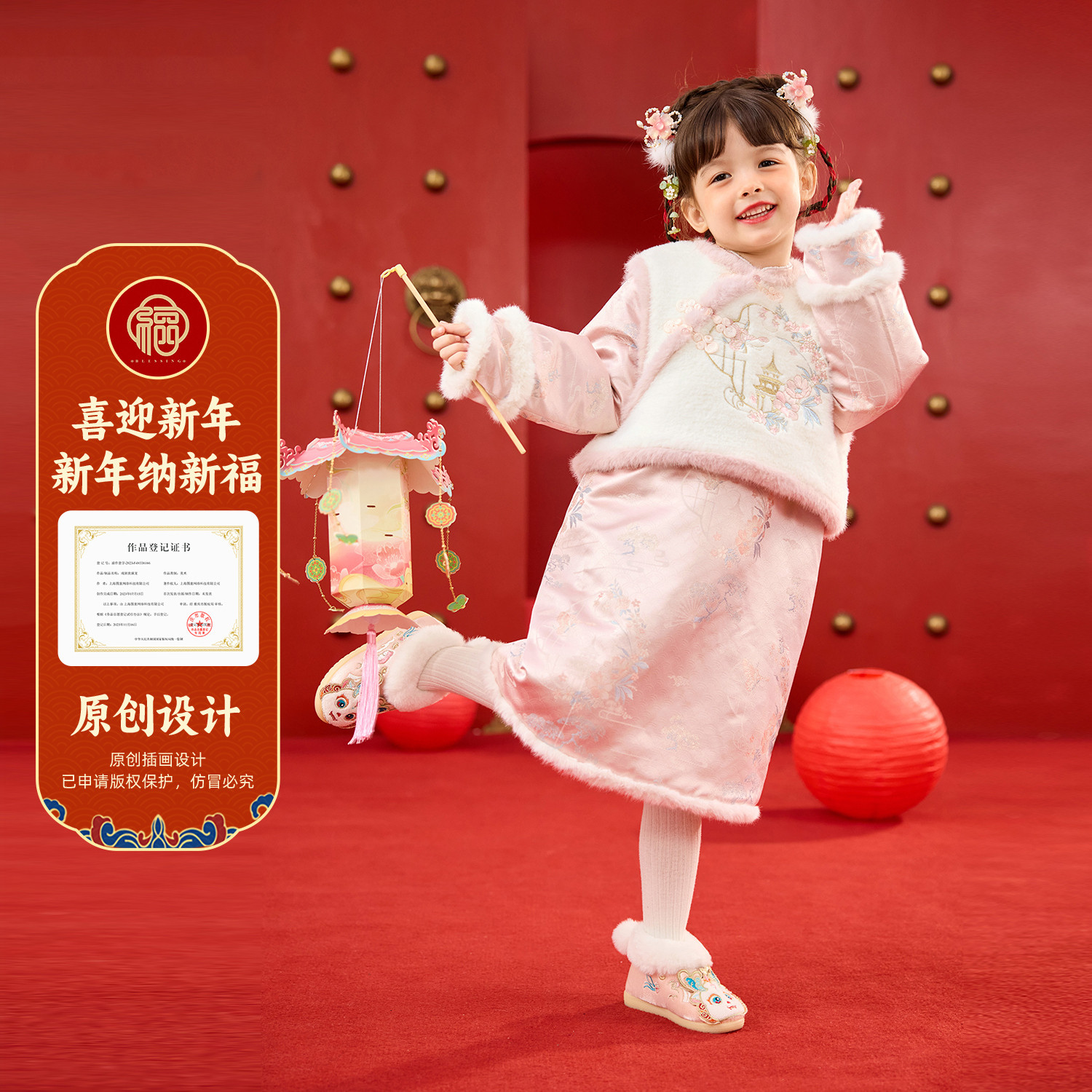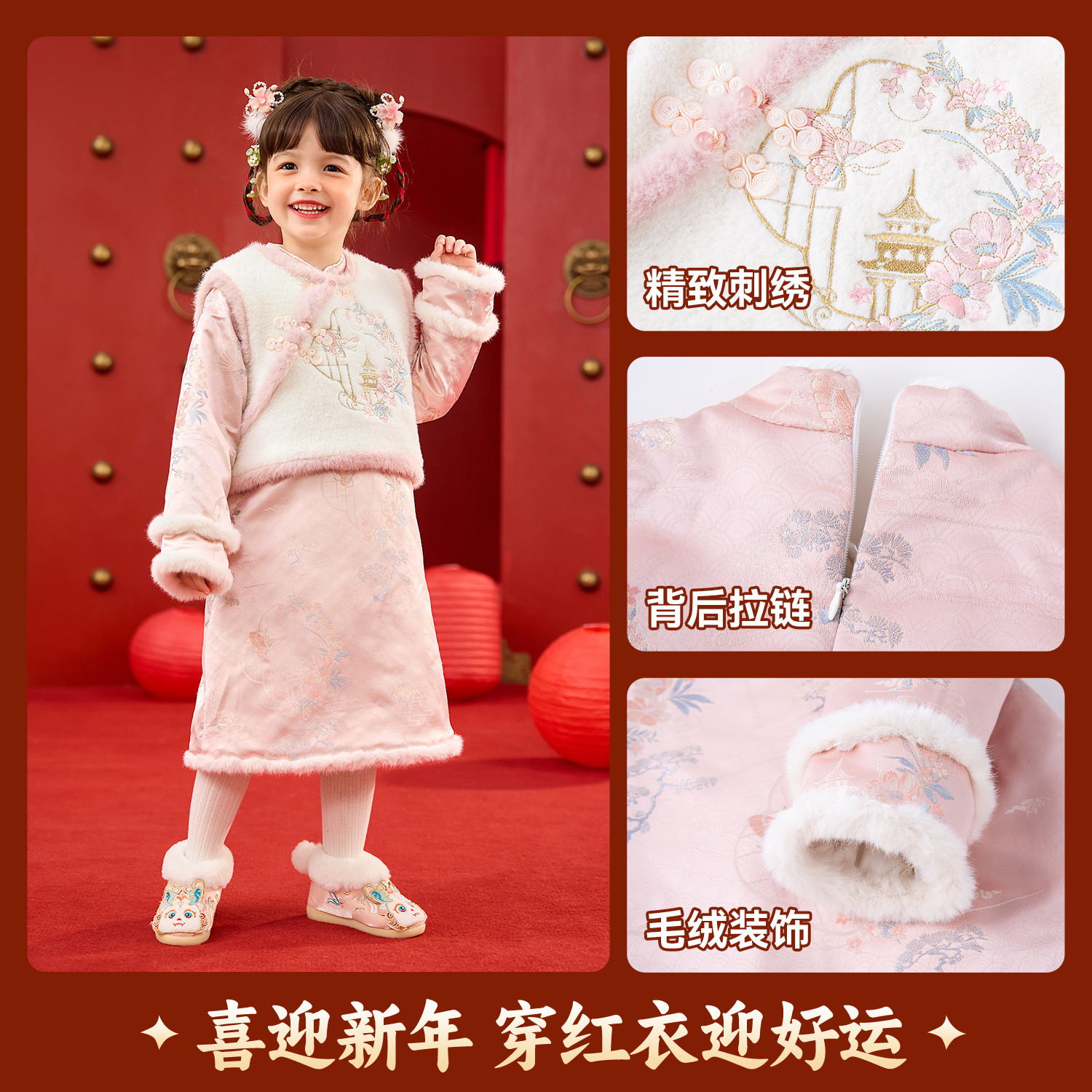 嘟嘟家女童唐装冬季拜年服宝宝新中式旗袍新年国风裙子小女生汉服