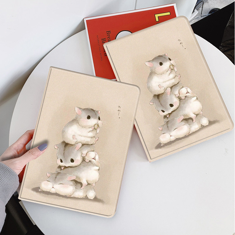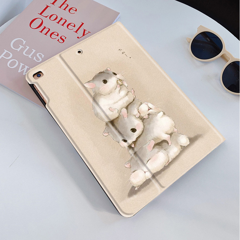 可爱仓鼠适用ipad5/6苹果9.7卡通第10代简约mini6三折10.5带笔槽air1气囊7/8/9平板pro11保护壳10.2迷你6女款