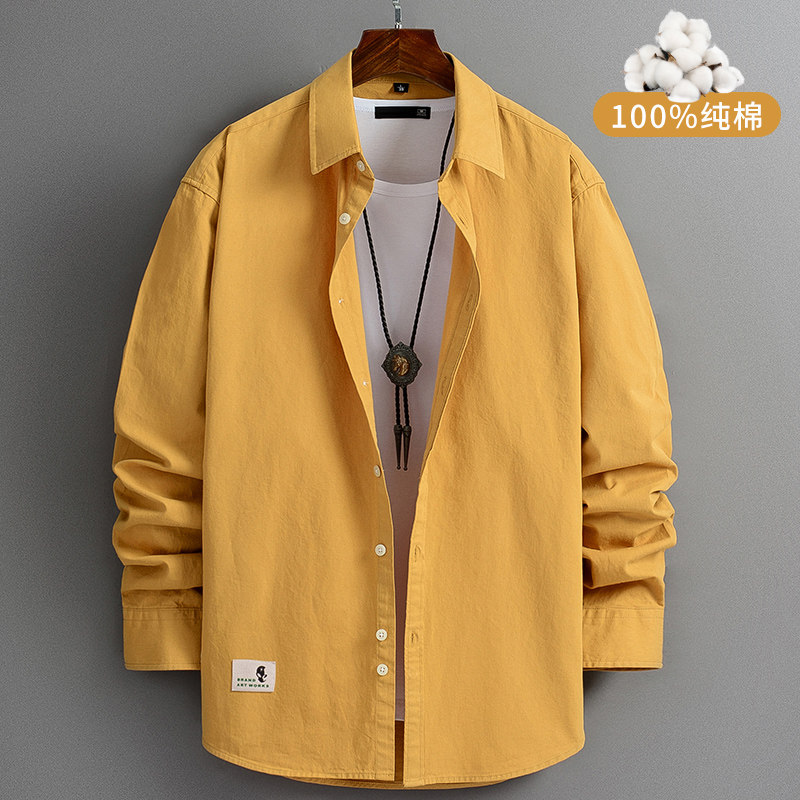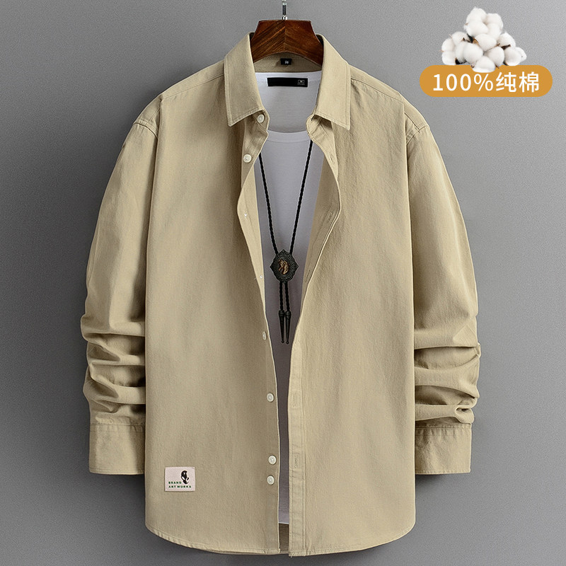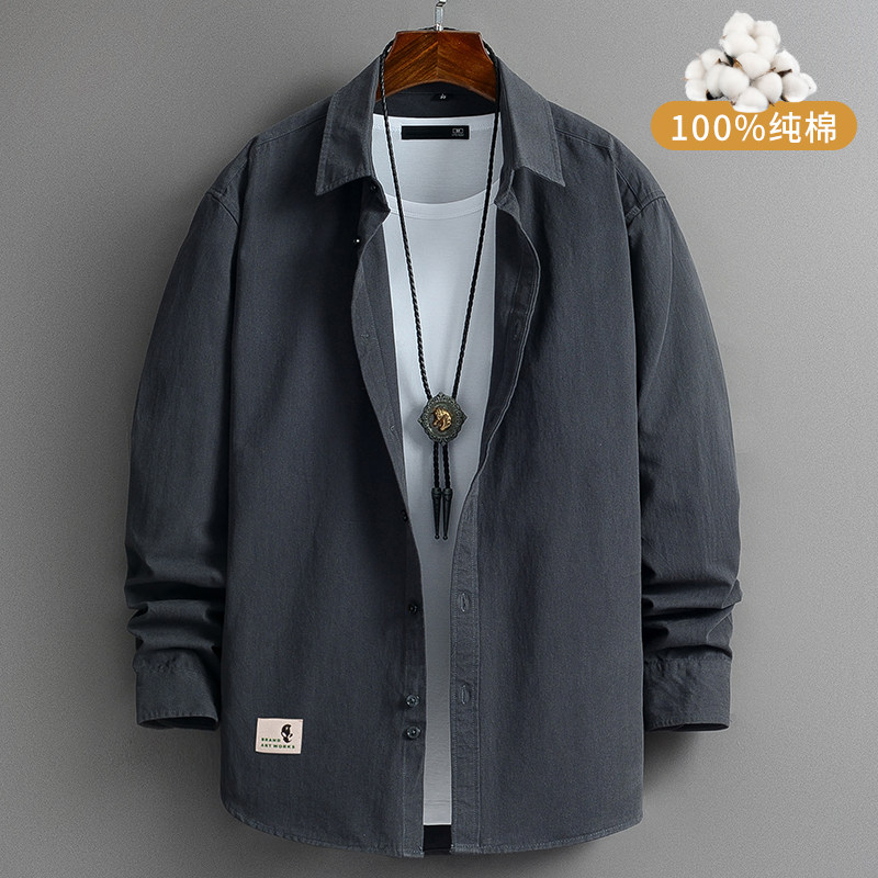 工装衬衫男士长袖春秋季薄款宽松休闲青年潮流港风丝光棉衬衣