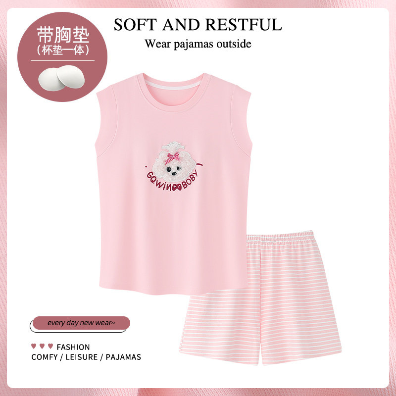 末里末【带胸垫】夏季纯棉无袖短裤2026甜美风外穿睡衣女士家居服