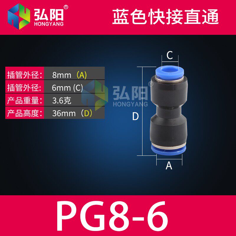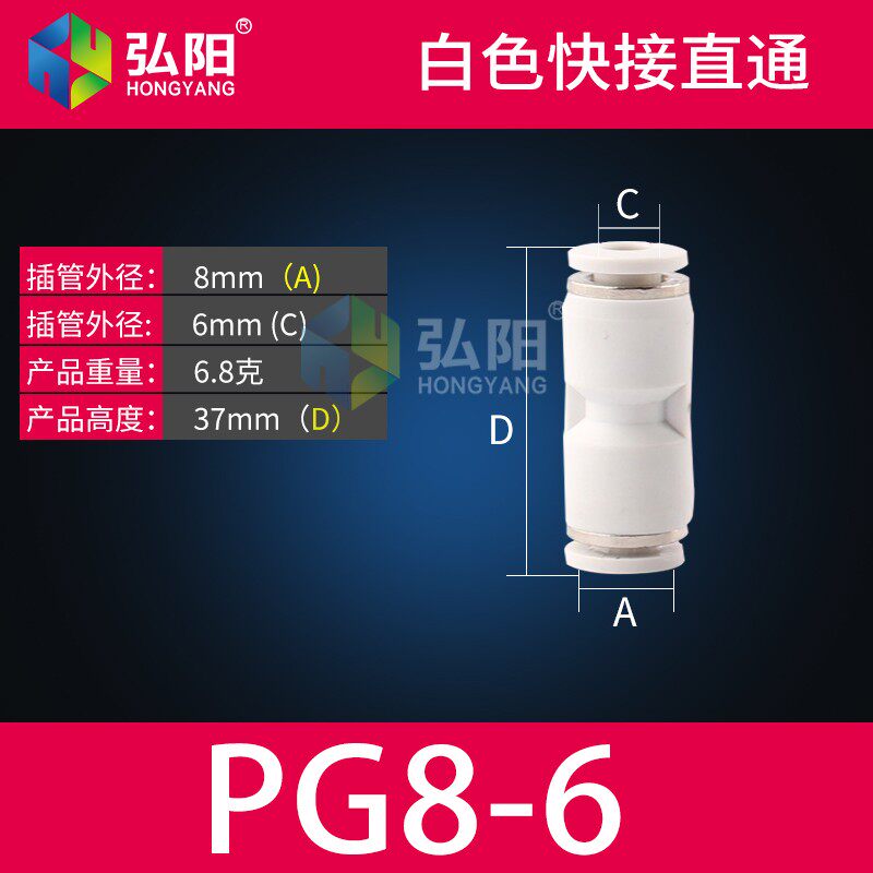 PU快接头直通气动元件水管气管PG内转直通6/8/10耐高压雕刻机配件