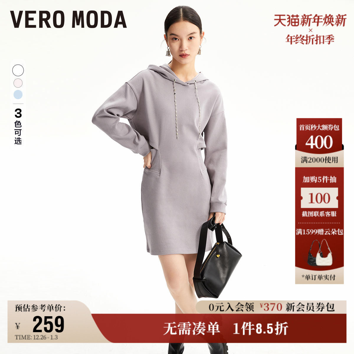 Vero Moda奥莱连衣裙子秋冬长袖卫衣版型连帽休闲运动收腰短裙女