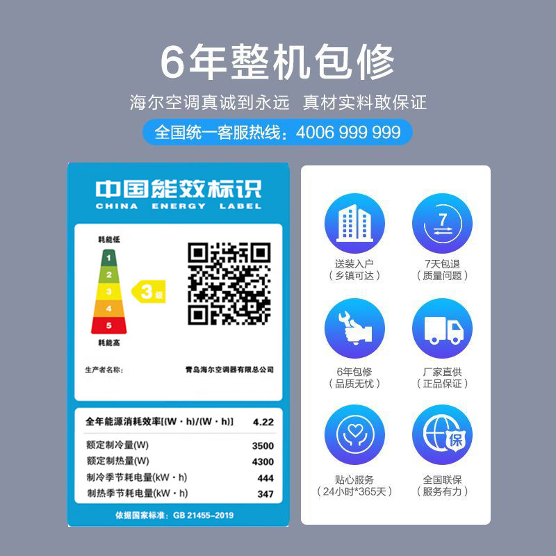Haier/海尔1.5P匹新三级能效变频冷暖家用卧室书房壁挂式挂机空调