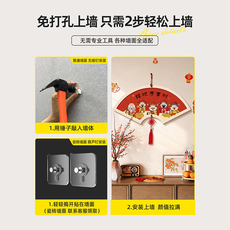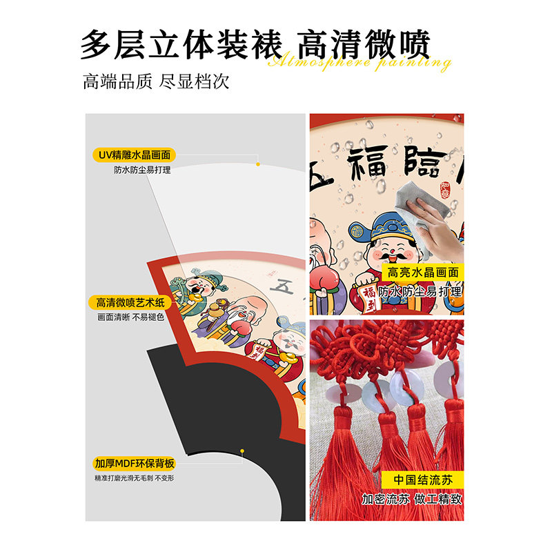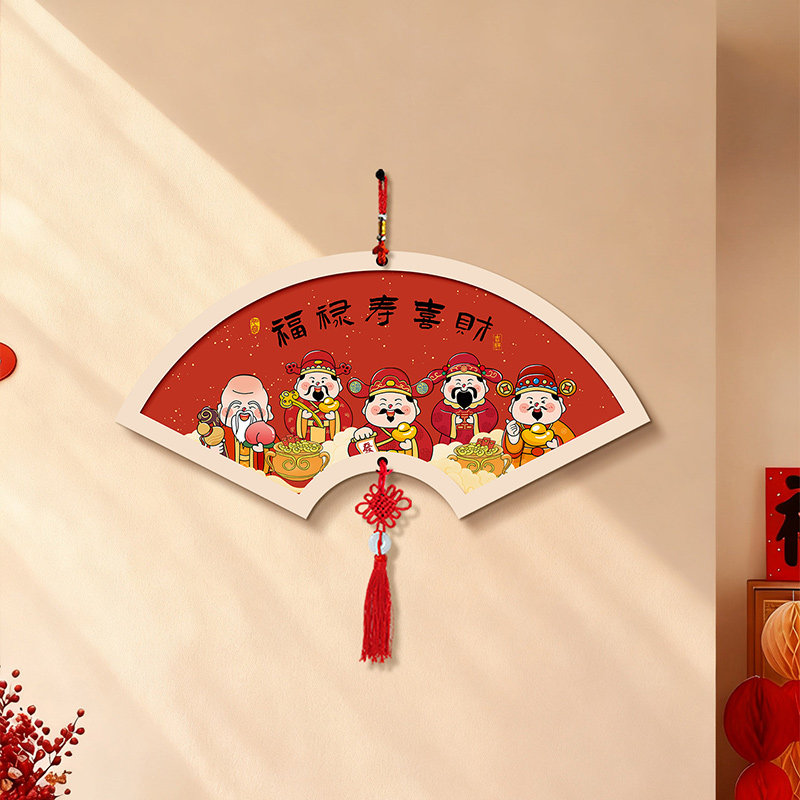新中式福字客厅装饰画茶室扇形字画挂饰餐厅中国结挂件壁画墙面