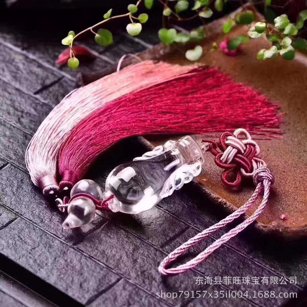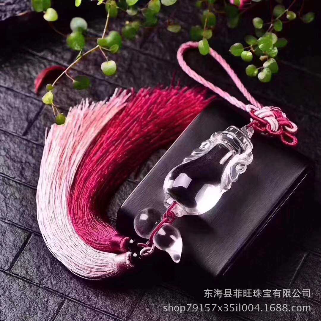 厂家 天然白水晶车挂 雕刻宝瓶水晶葫芦 汽车挂饰本命年手编织