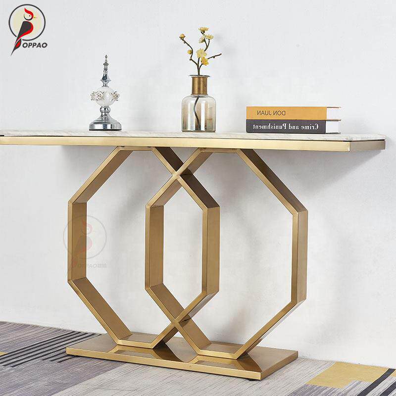 岩板大理石轻奢玄关桌柜台现代入户走廊装饰端景简约靠墙条案金色