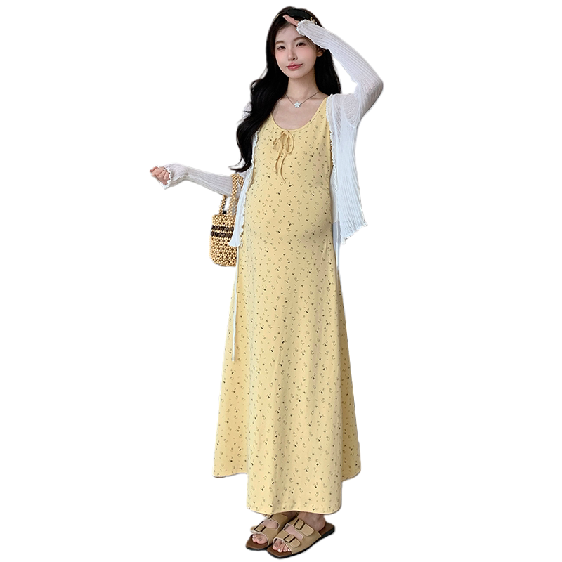 婧麒孕妇装夏季2025新款碎花连衣裙孕妈高级感穿搭时尚套装洋气