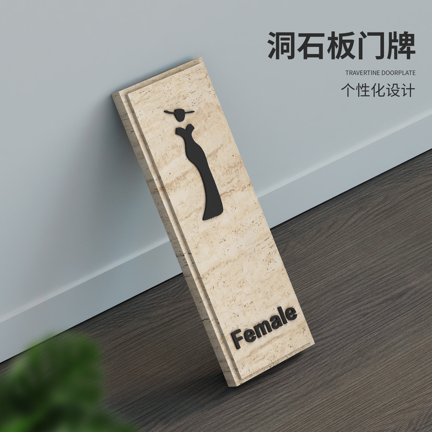 ins风天然洞石卫生间标识牌男装女装服饰店贴墙式厕所大理石挂牌