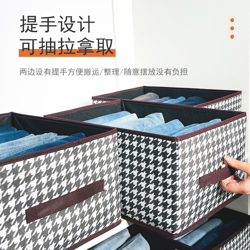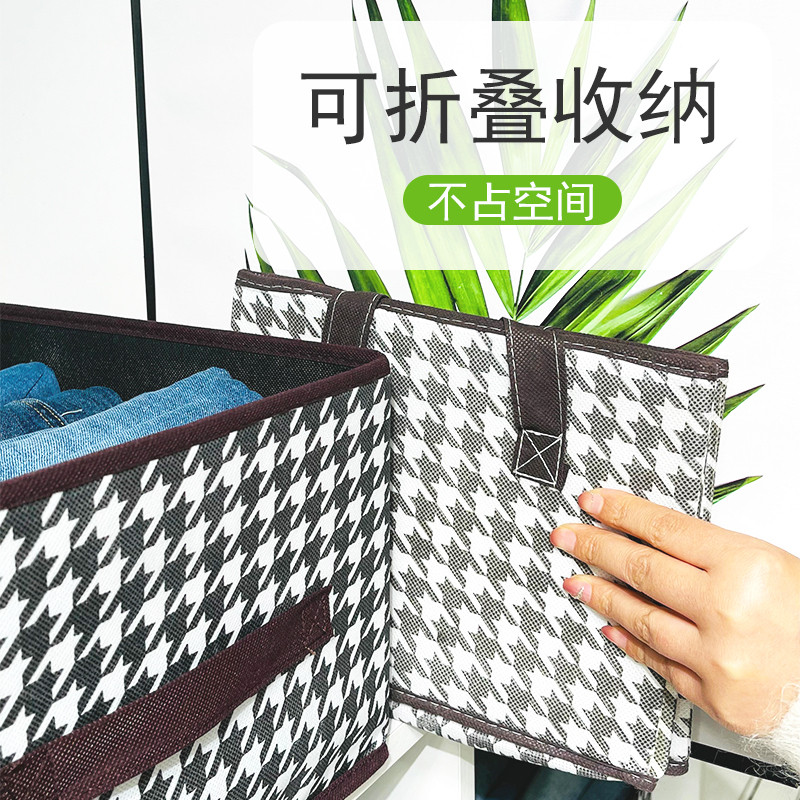 衣服收纳箱千鸟格家用衣柜分层整理收纳神器放衣物布艺折叠收纳筐