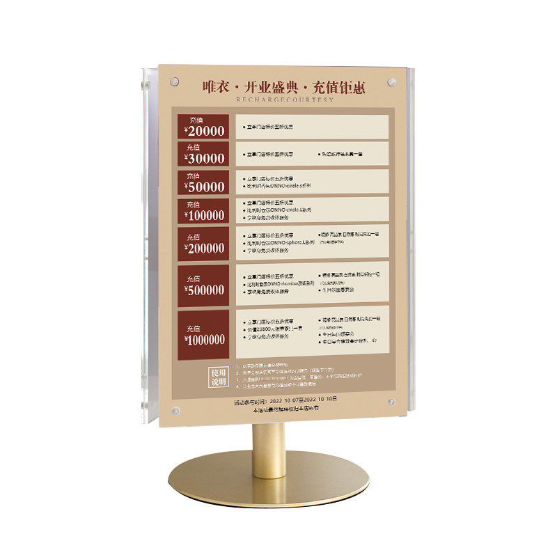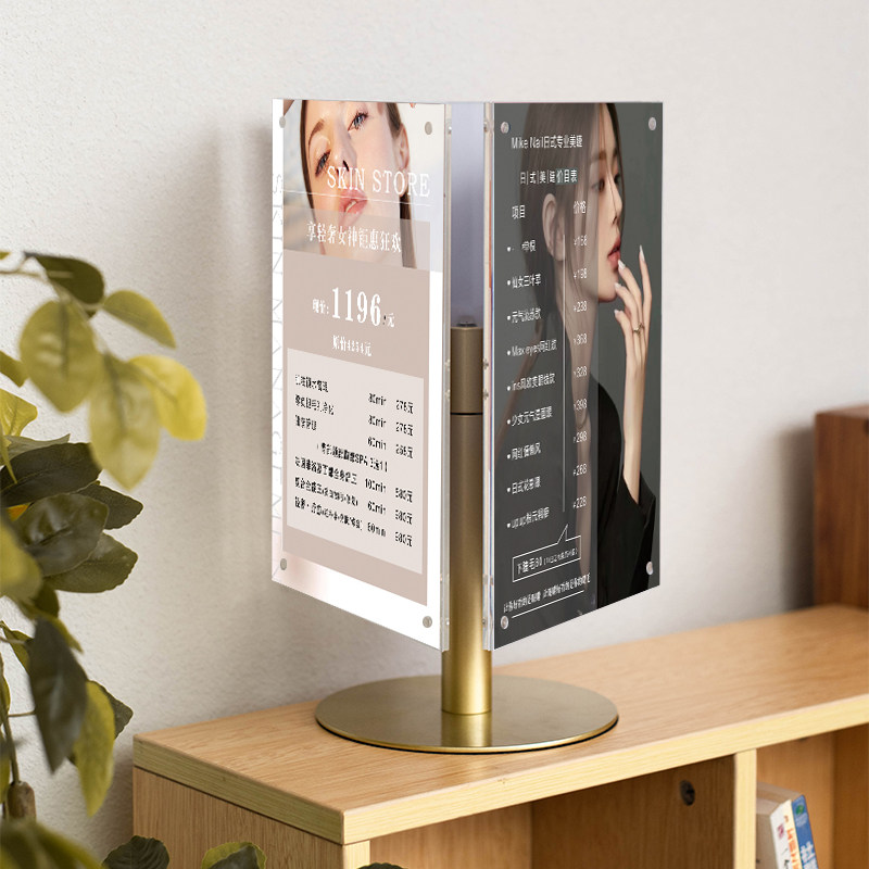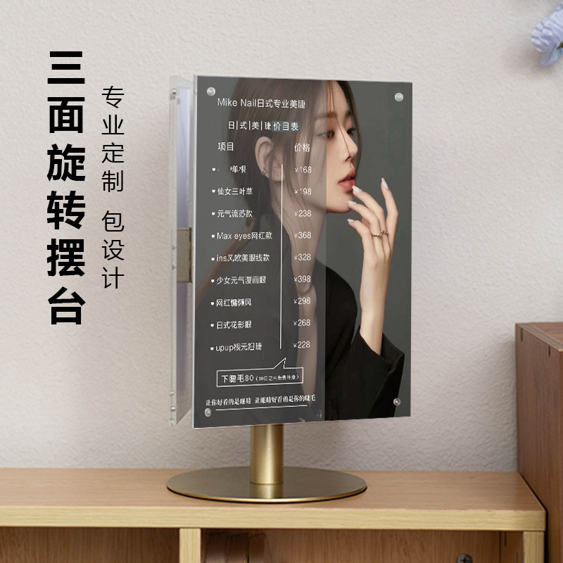 美容院价目表三面旋转台卡美甲美睫美发高档金属桌牌价格表展示牌