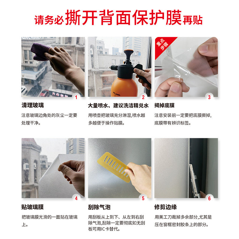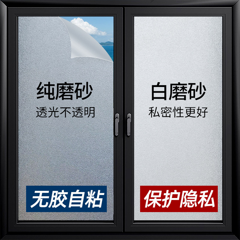 窗户磨砂玻璃贴纸透光不透明浴室卫生间门防走光防窥隐私静电贴膜