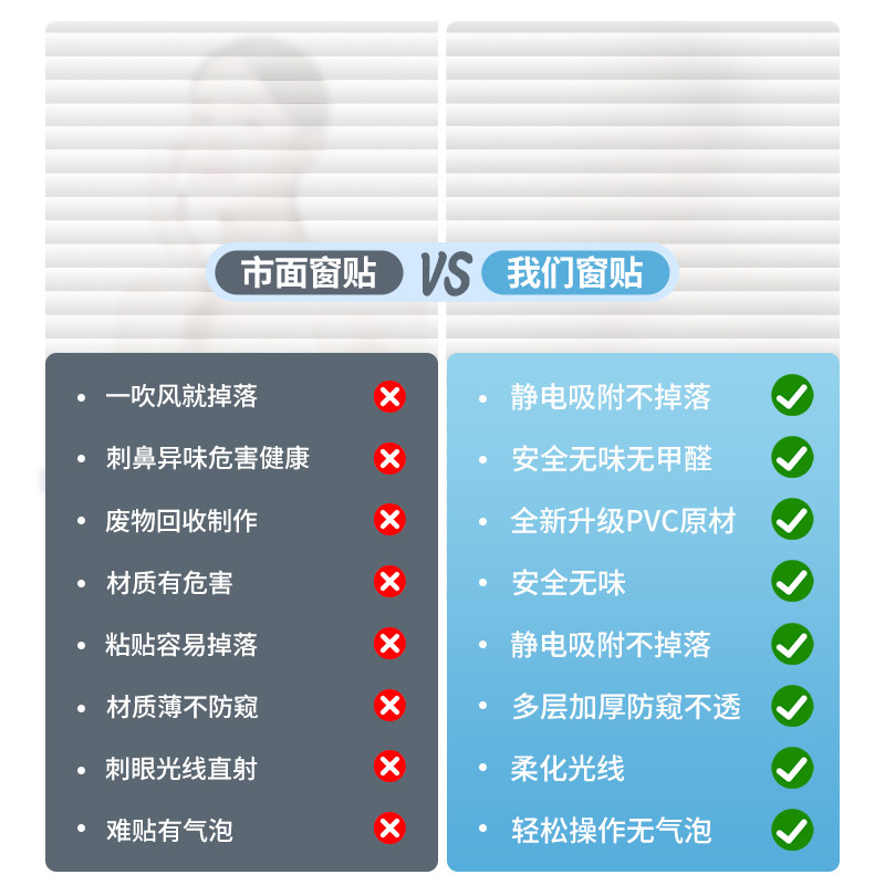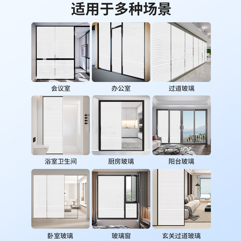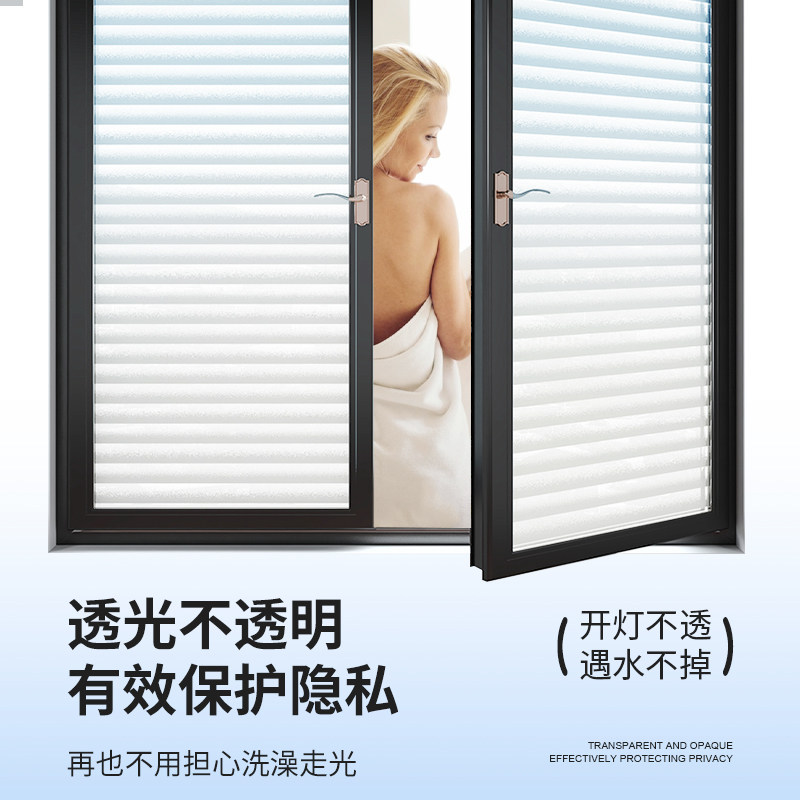 百叶窗户玻璃贴纸透光不透明浴室卫生间静电防窥膜磨砂贴膜防走光