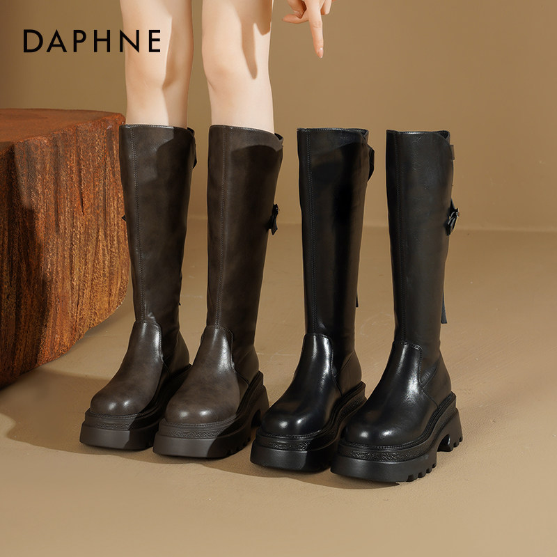 达芙妮长筒靴女2025新款秋冬加绒靴子小个子厚底高筒靴不过膝长靴