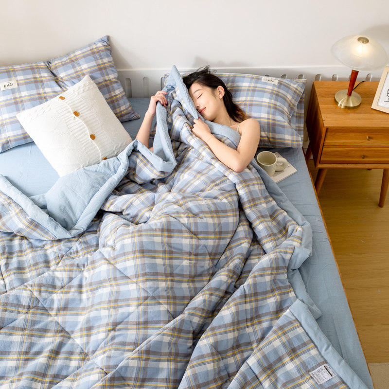 A类全棉双层纱夏凉被四件套空调被可机洗薄款被子夏季夏被三件套4