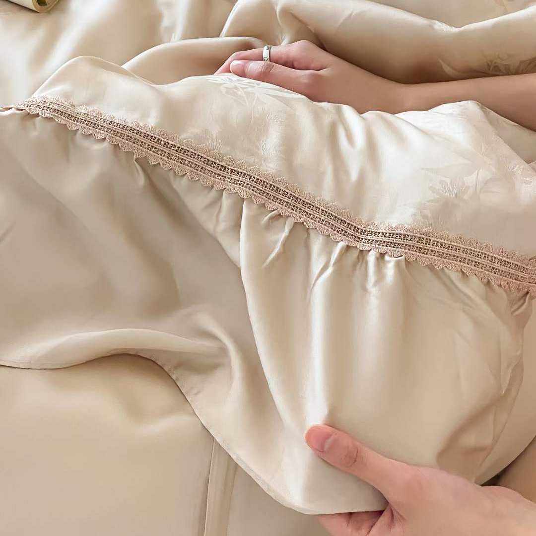 贵妇高级感|法式80支奥地利兰精天丝四件套凉感浪漫裙摆花边套件