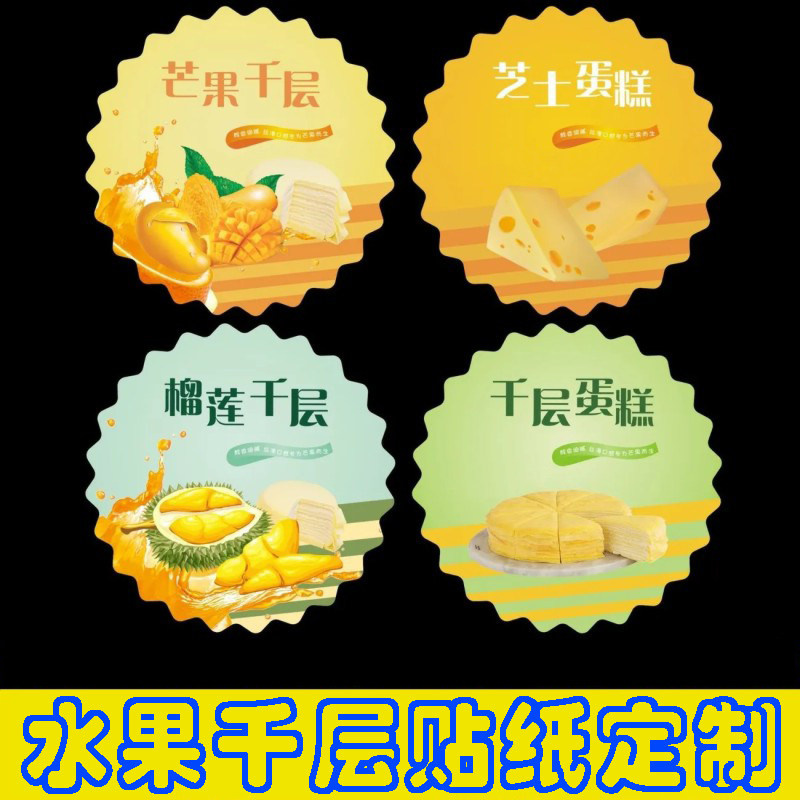 定制水果千层蛋糕贴纸甜品榴莲草莓芒果包装盒子小清新长条封口贴烘焙装饰贴纸提拉米苏打包盒标签腰封不干胶