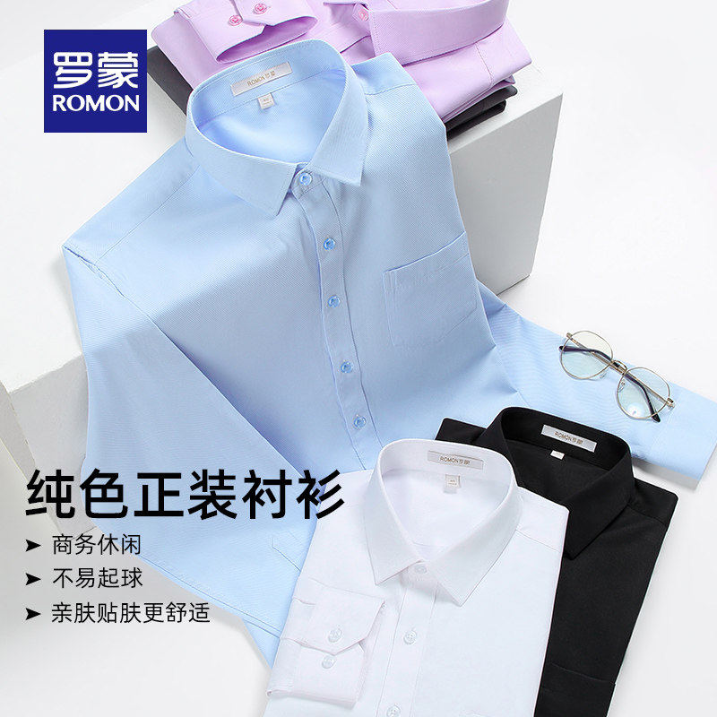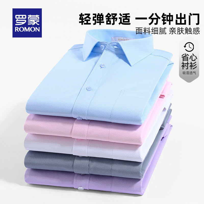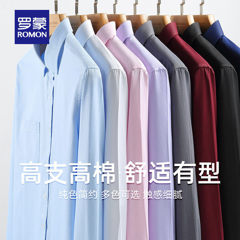 罗蒙男士商务长袖衬衫2026春季新款抗皱易打理斜纹职业工装衬衣男