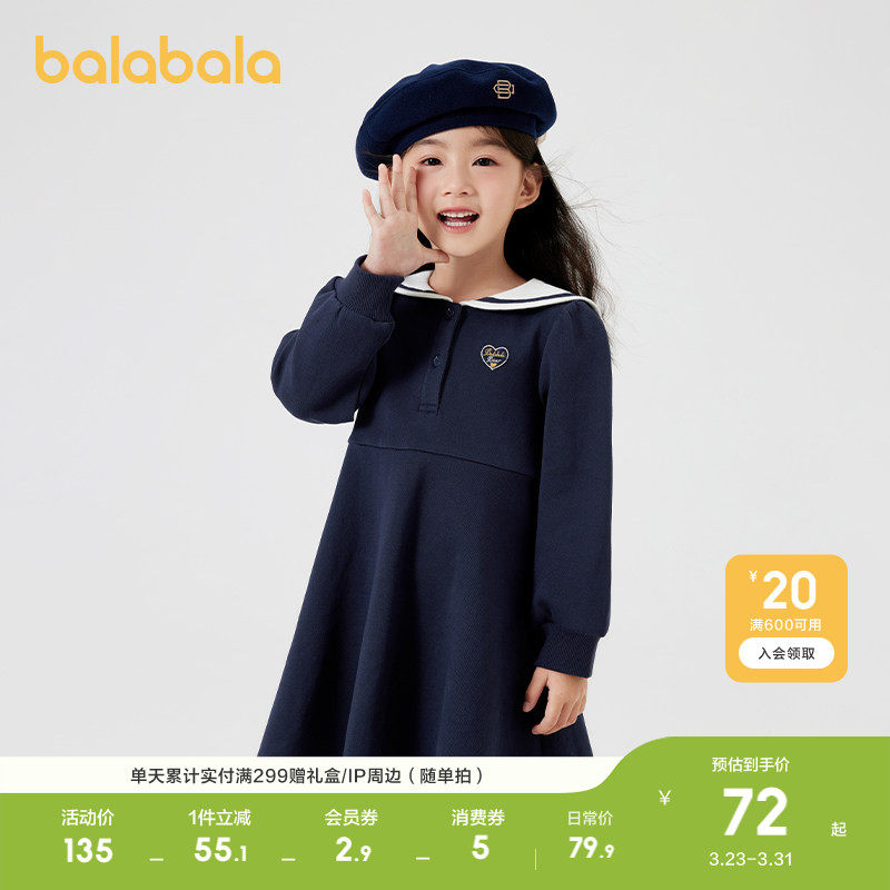 巴拉巴拉童装女童连衣裙春秋装学院风小童宝宝翻领儿童裙子可爱潮