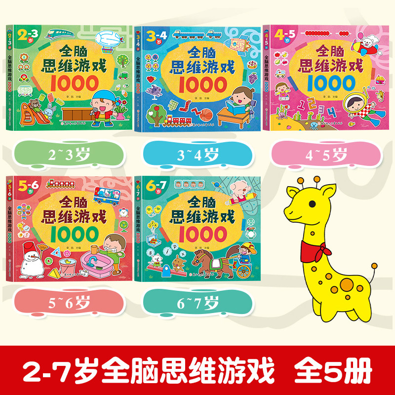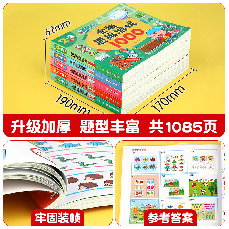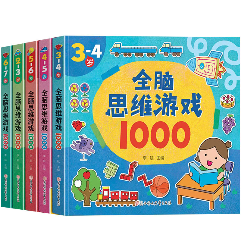 全脑思维游戏1000题全套5册2-3-4-5-6岁幼儿益智书籍思维训练宝宝左右脑开发儿童早教图书潜能游戏书中班大班幼儿园专注力逻辑智力