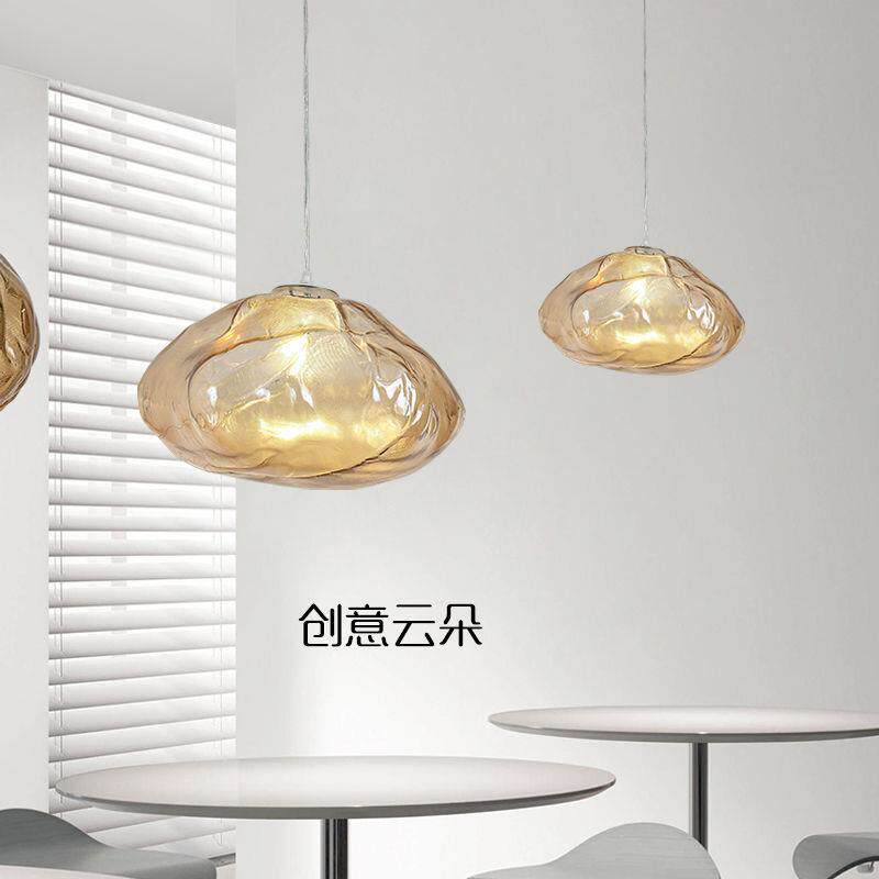 后现代云朵吊灯餐厅酒店复式楼梯灯创意个性吧台装饰布纹玻璃吊灯