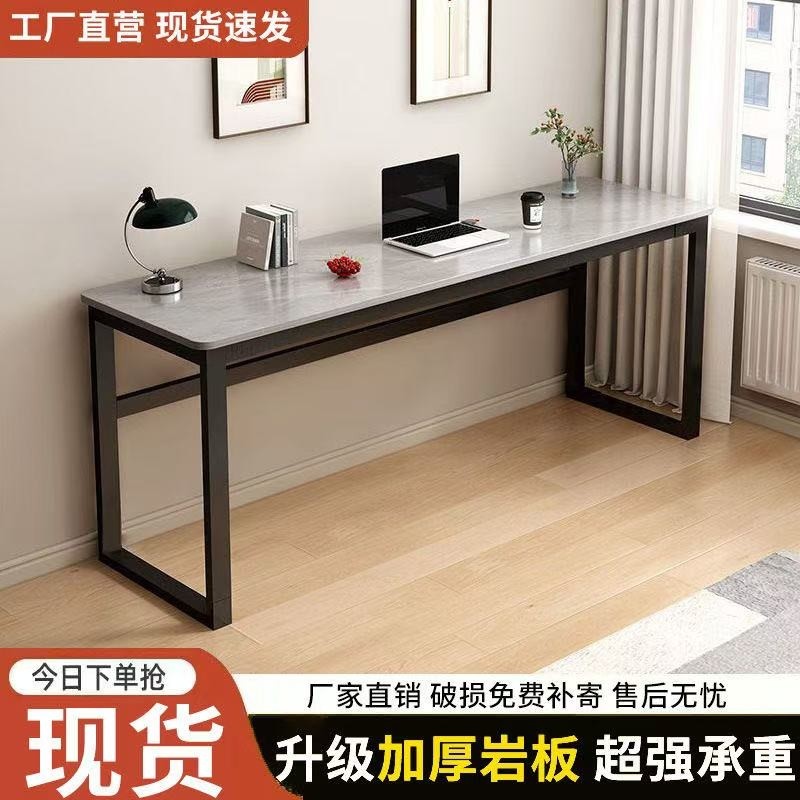 岩板桌窄条桌现代简约长条书桌玄关桌电脑桌置物架家居办公台面