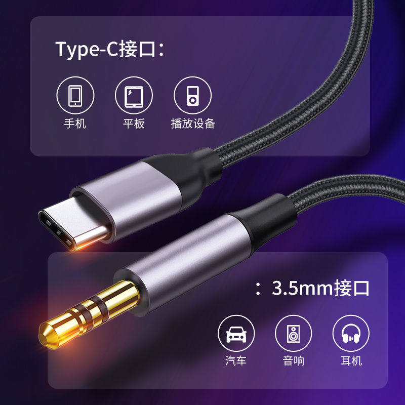 适用HONOR荣耀400Pro手机TypeC转3.5mm连接汽车音响AUX音频线华为荣耀400车载音箱听歌USB-C转3.5mm连接线