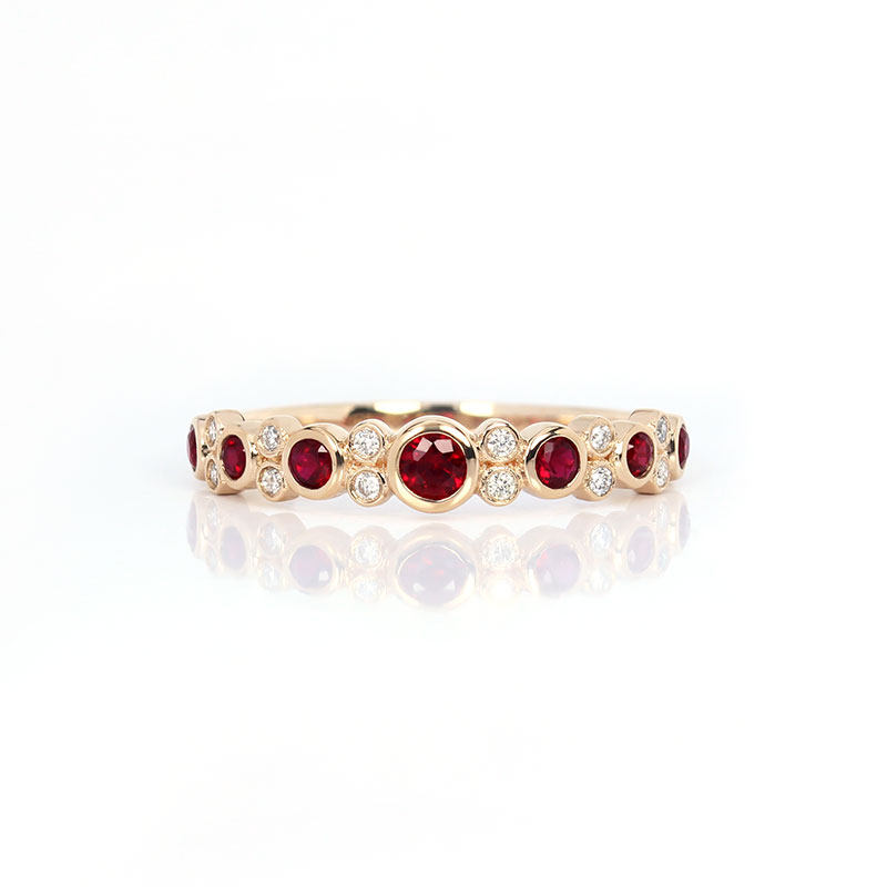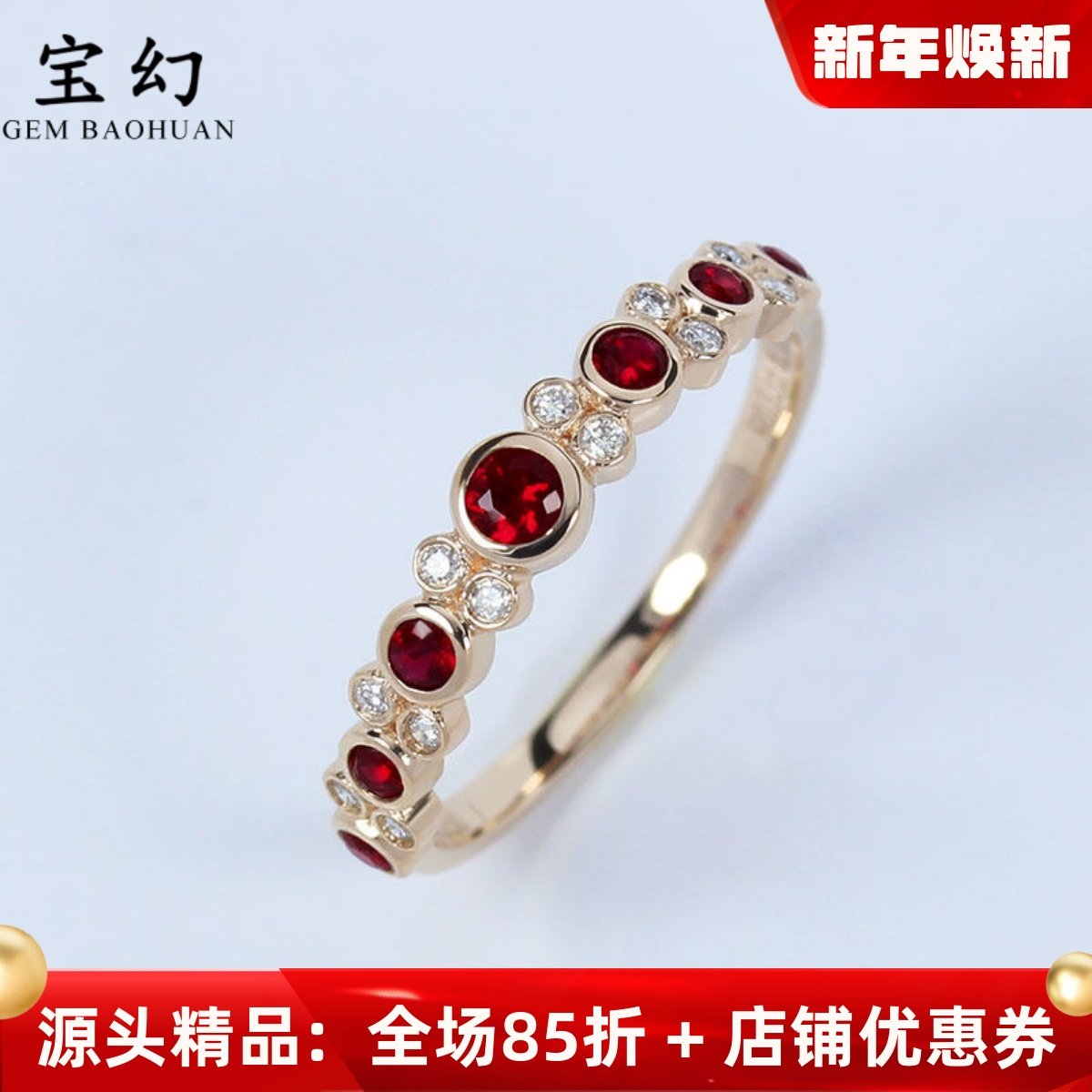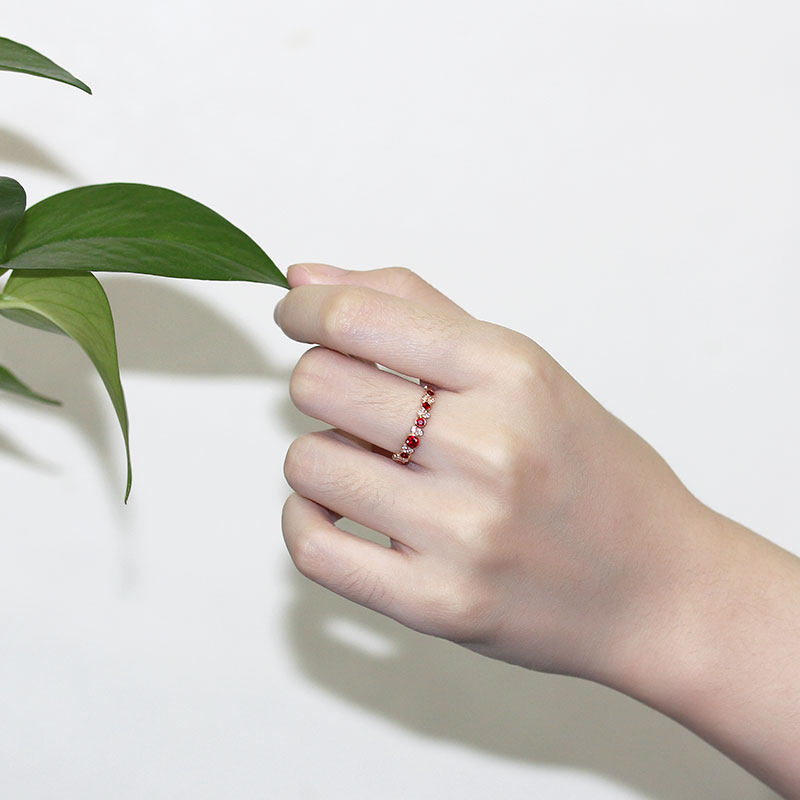 18K玫瑰金天然鸽血红宝石钻石包镶排戒 不挂衣服尾戒通勤女款戒指