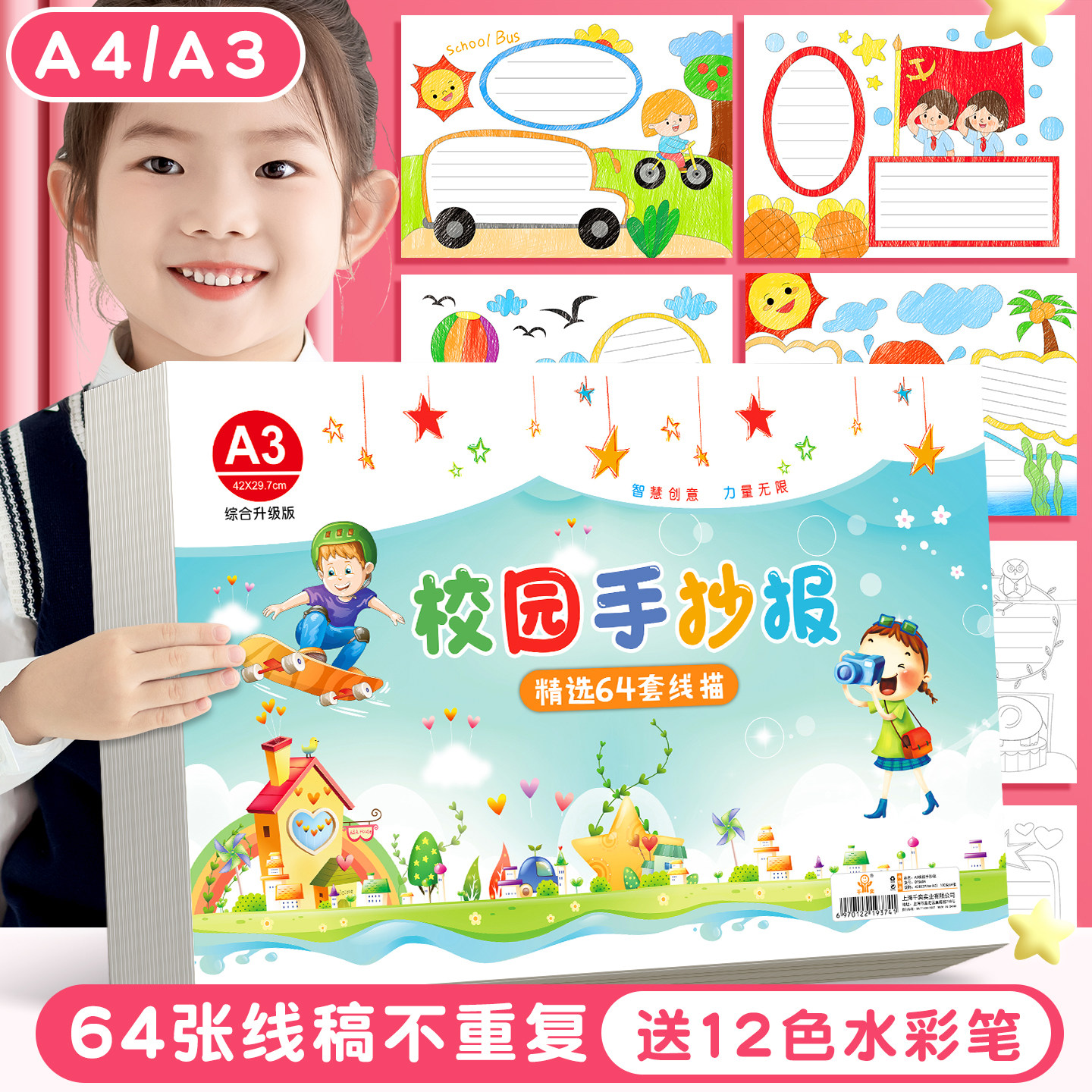包邮a4手绘半成品素材专用纸套装神器A3绘画本校园8k图模版报全年节日手抄报模板作业小学生国庆节读书小报4k