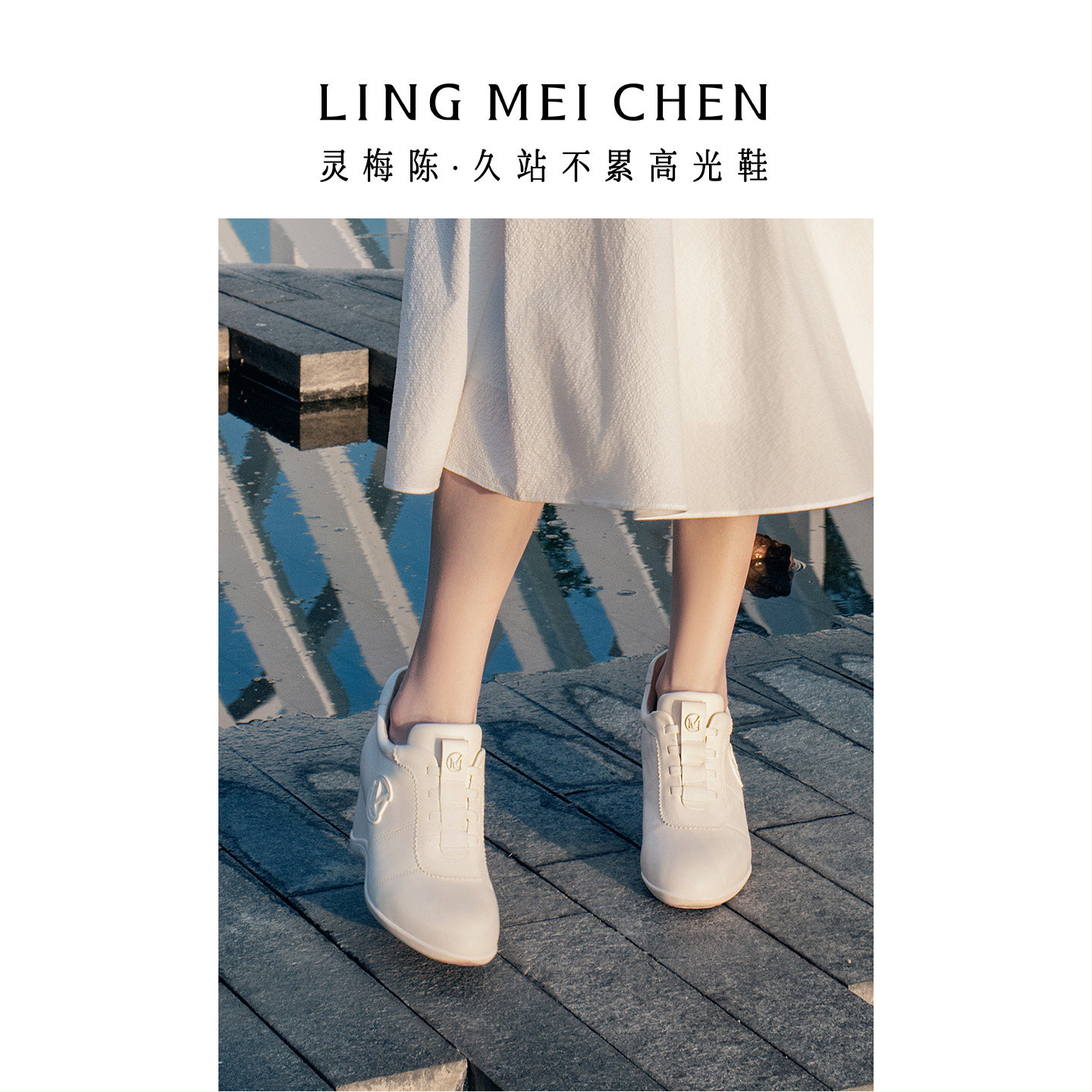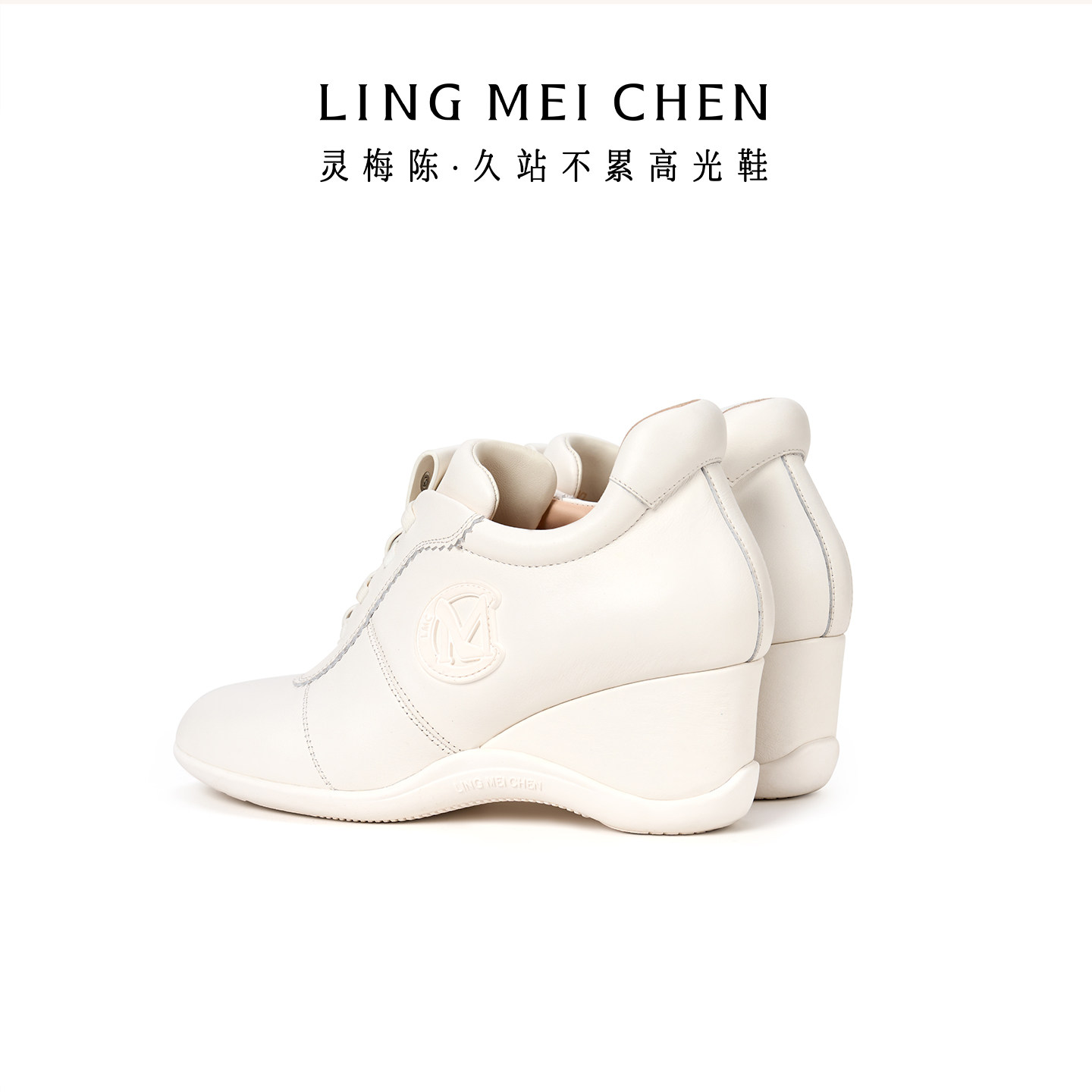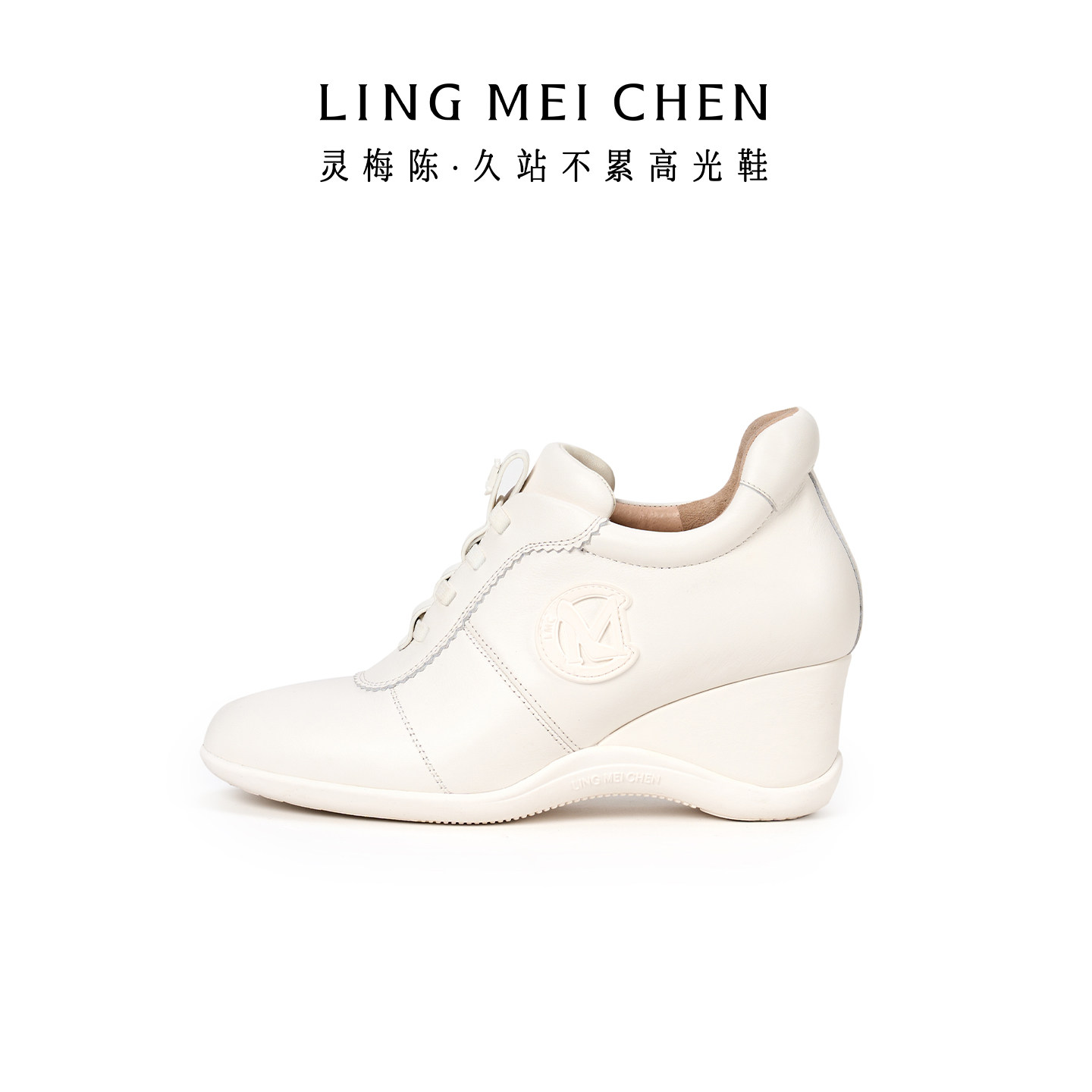 LINGMEICHEN坡跟休闲鞋女款皮鞋运动高跟鞋厚底增高鞋小白鞋女鞋
