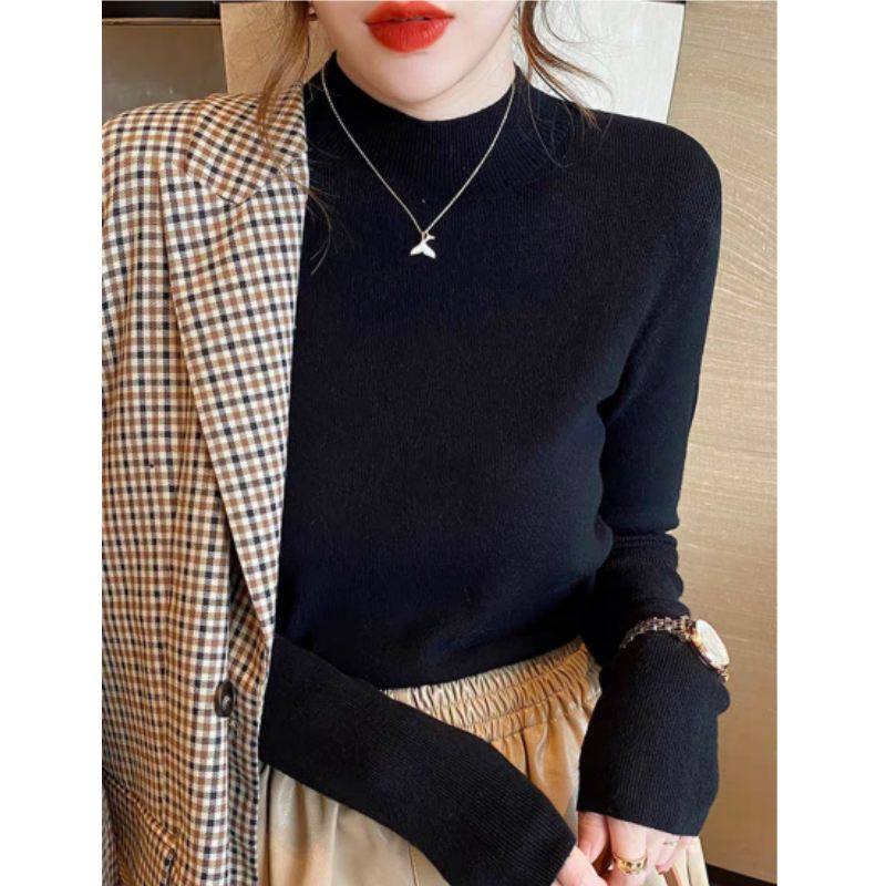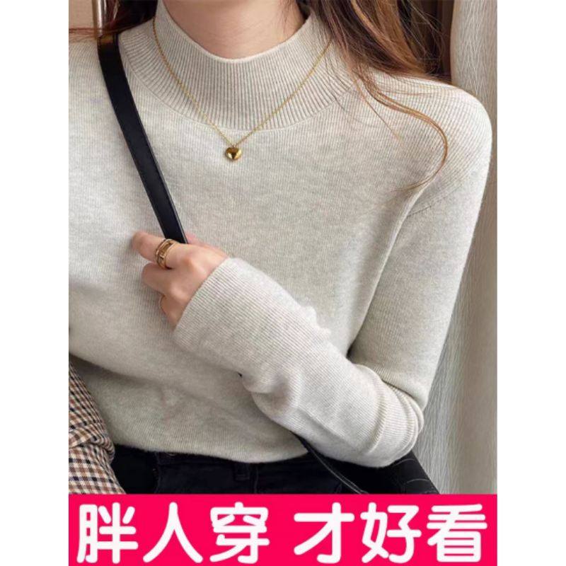 半高领针织衫女打底衫西装内搭大码套头洋气毛衣早秋上衣胖mm秋冬