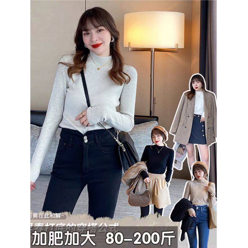 Yuan【绵绵云朵】大码秋冬立领贴身胖mm针织保暖打底衫|内搭bi备