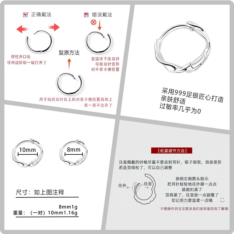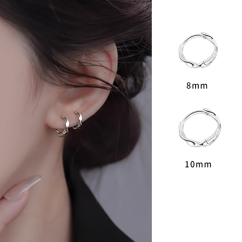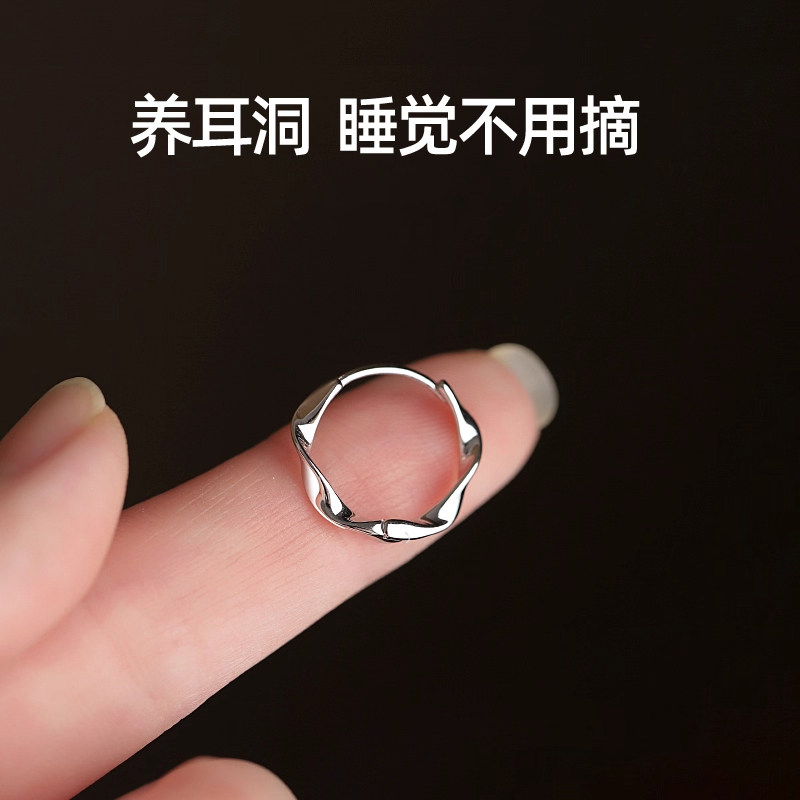 S999纯银耳环耳圈耳骨钉养耳洞耳骨环高级感素圈耳扣耳钉女耳饰男