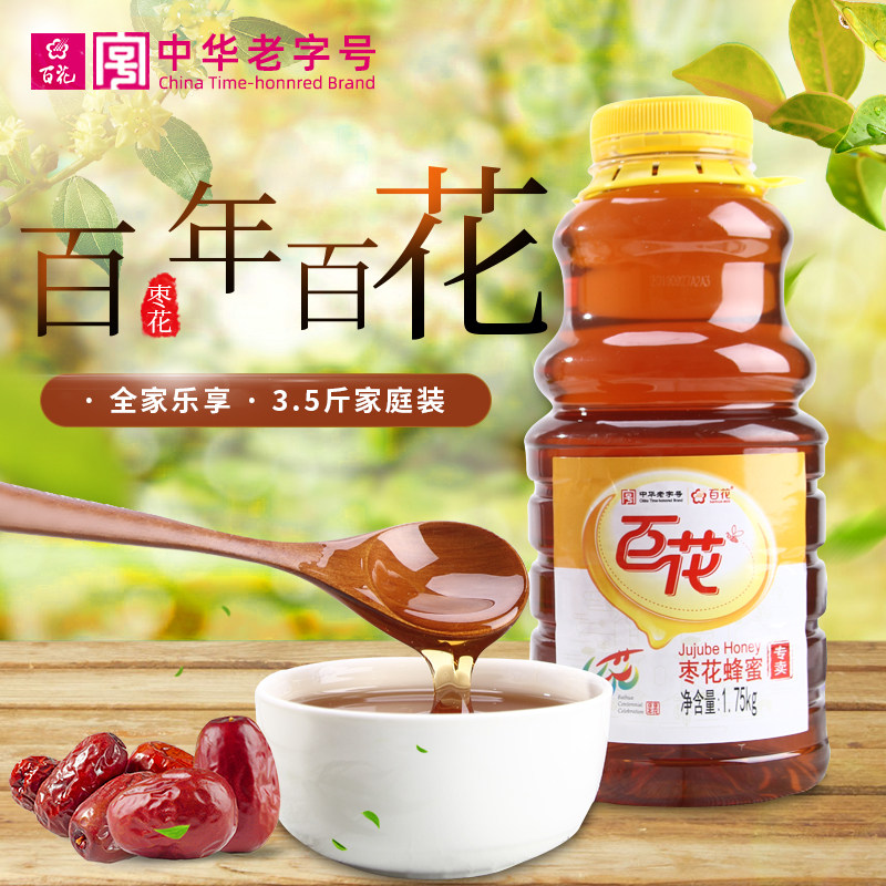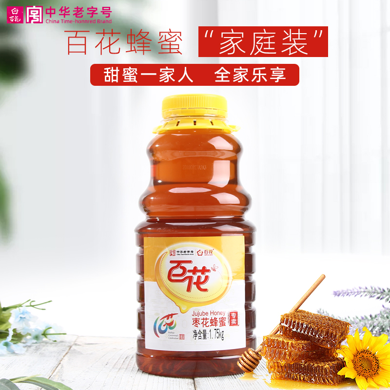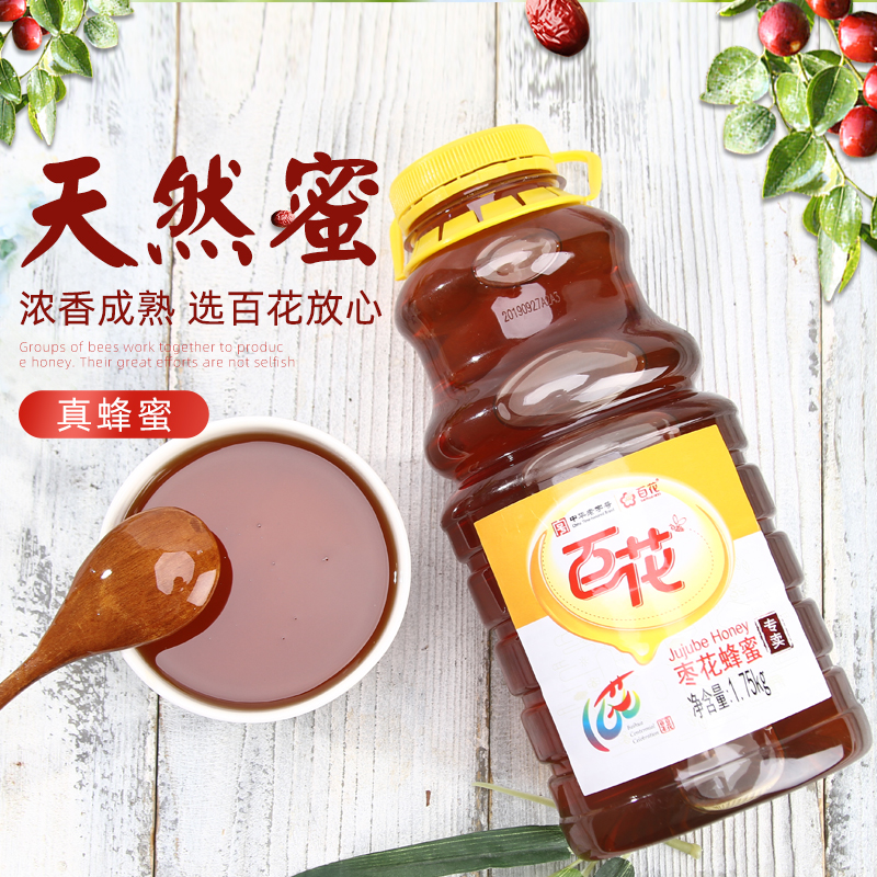 中华老字号 百花牌枣花蜂蜜1750g家庭装大瓶农家蜜天然纯正百花蜜