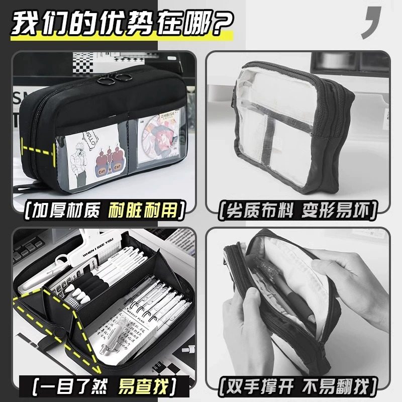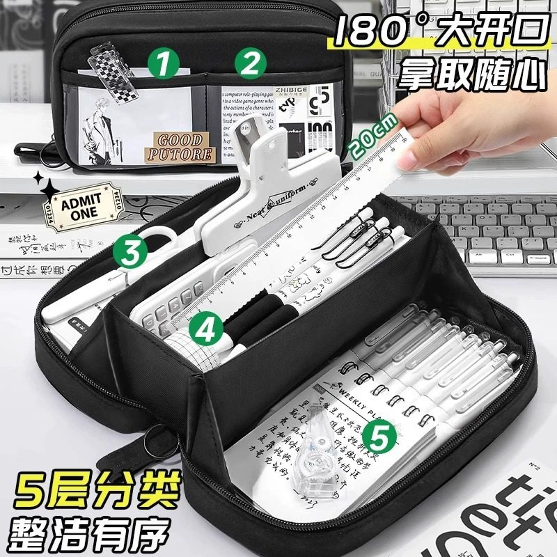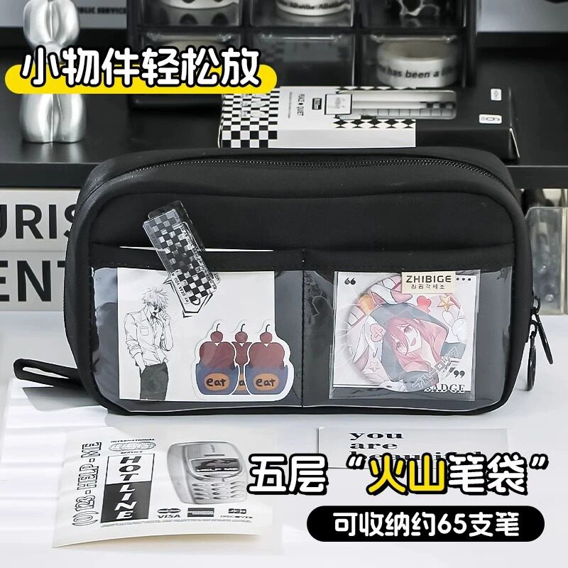 加大容量火山笔袋男孩子款2025新款文具盒初中生高中铅笔盒男生男童三五六年级小学生用女生女孩高颜值简约黑