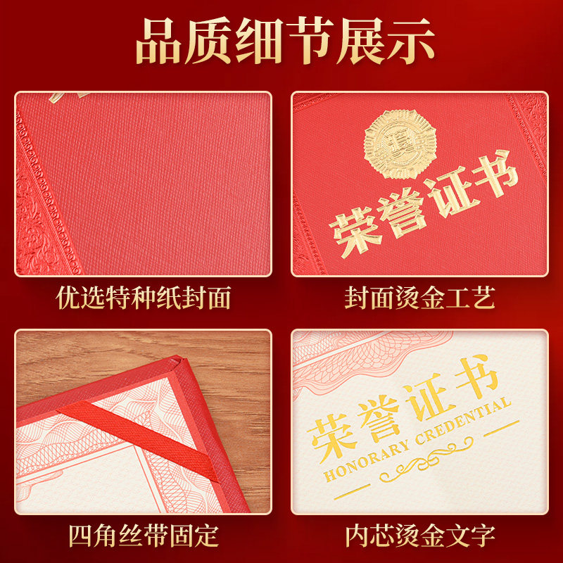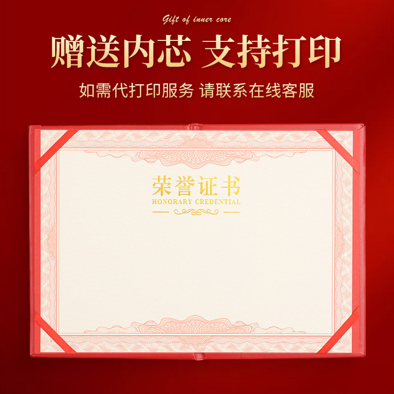 荣誉证书外壳高档批发定制A4内页纸打印员工获奖股权封皮制作内芯