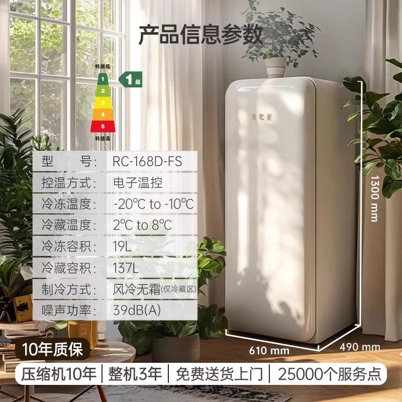 志高单门复古小冰箱冷藏柜保鲜冷饮美妆母婴保鲜柜客厅办公室迷你
