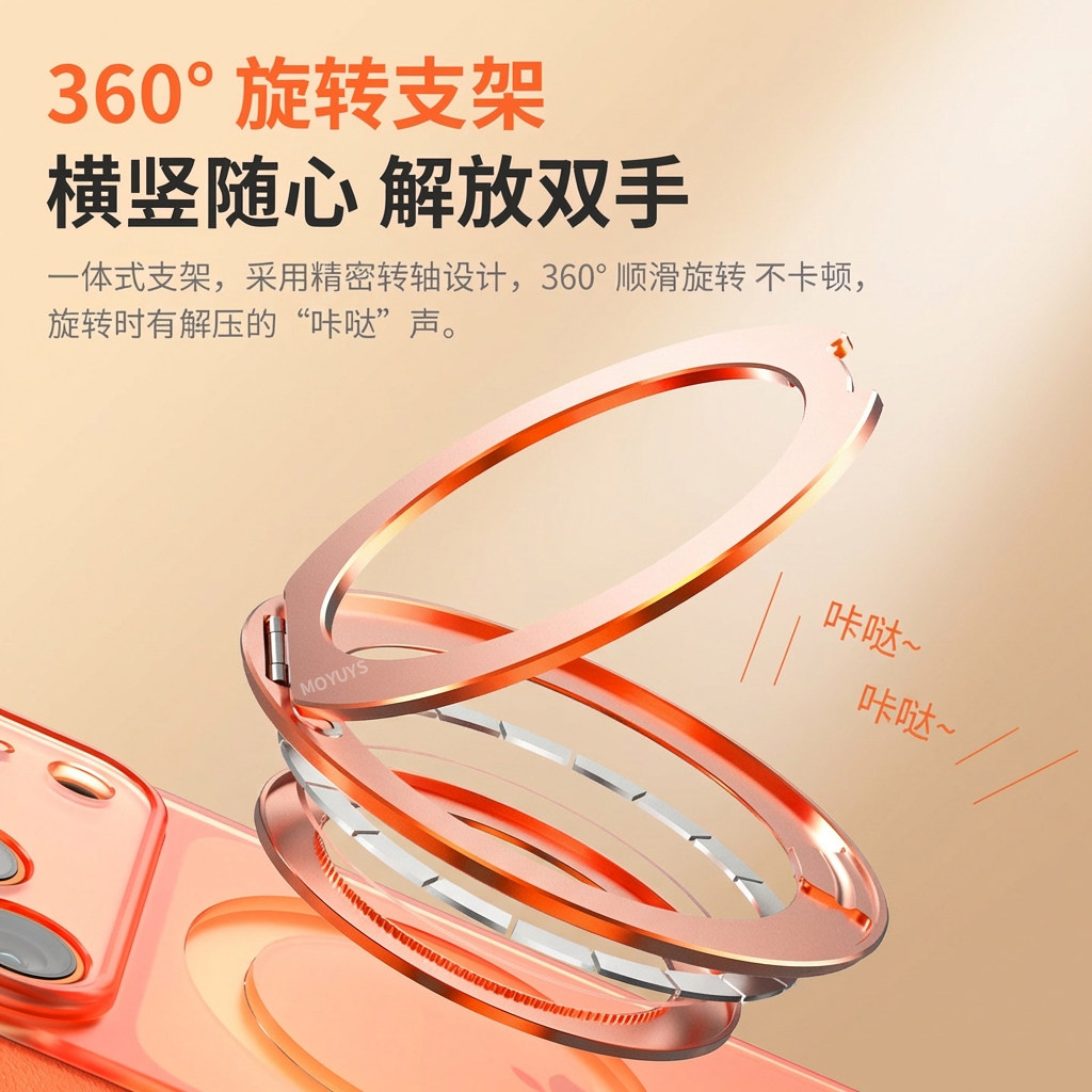 内嵌磁吸旋转支架 皮纹边框纹理防滑抗汗