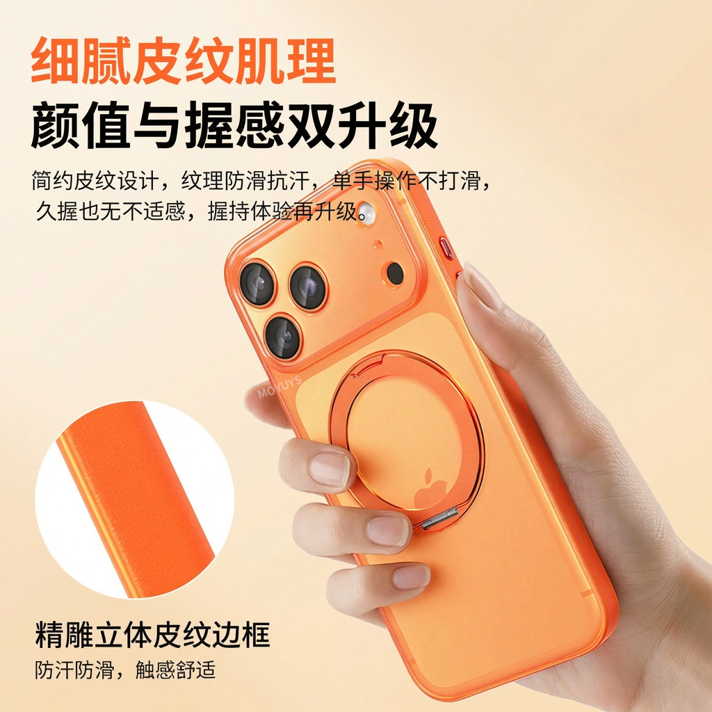 适用iPhone苹果17promax手机壳17pro磁吸旋转支架17皮纹高级感16promax全包防摔16pro轻薄磨砂16小众简约新款