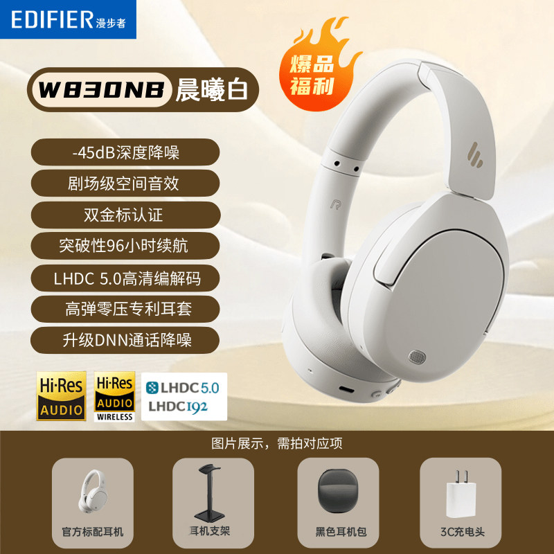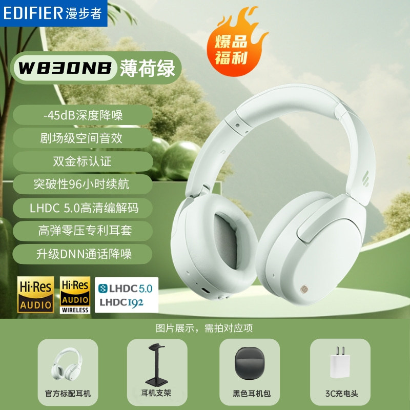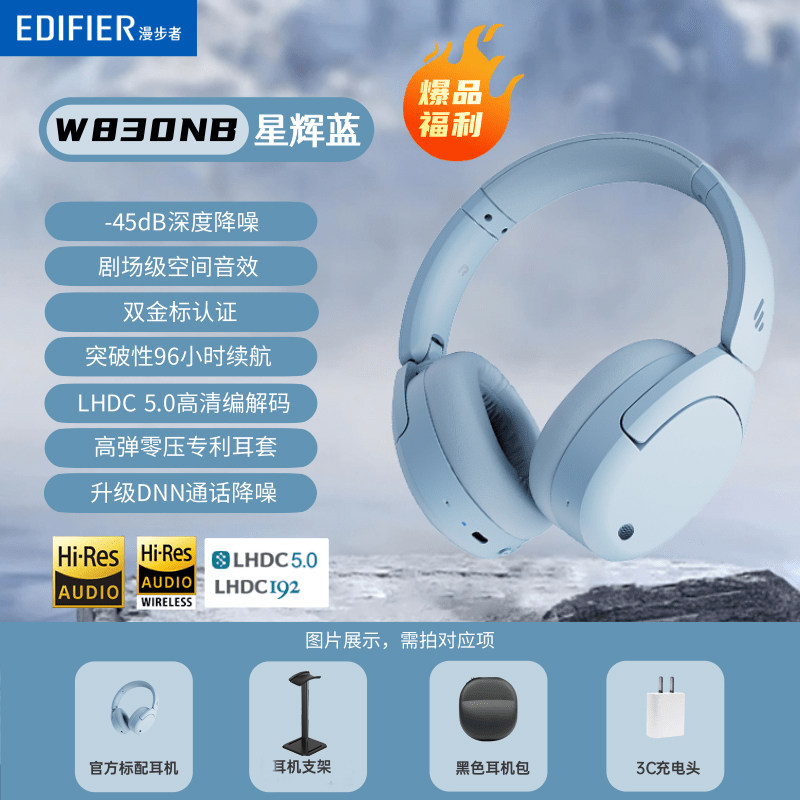 Edifier/漫步者 W830NB蓝牙耳机头戴式主动降噪无线耳麦运动跑步